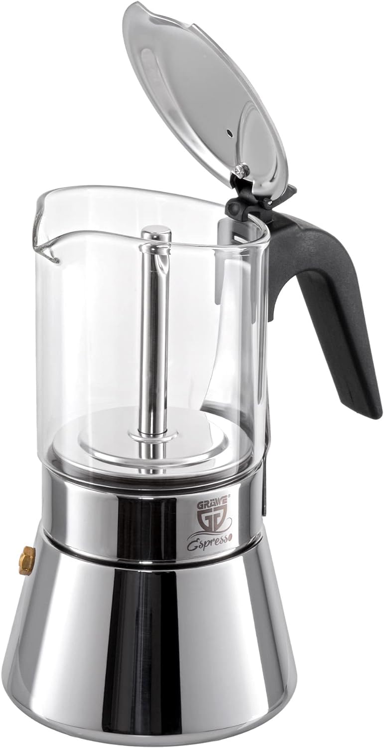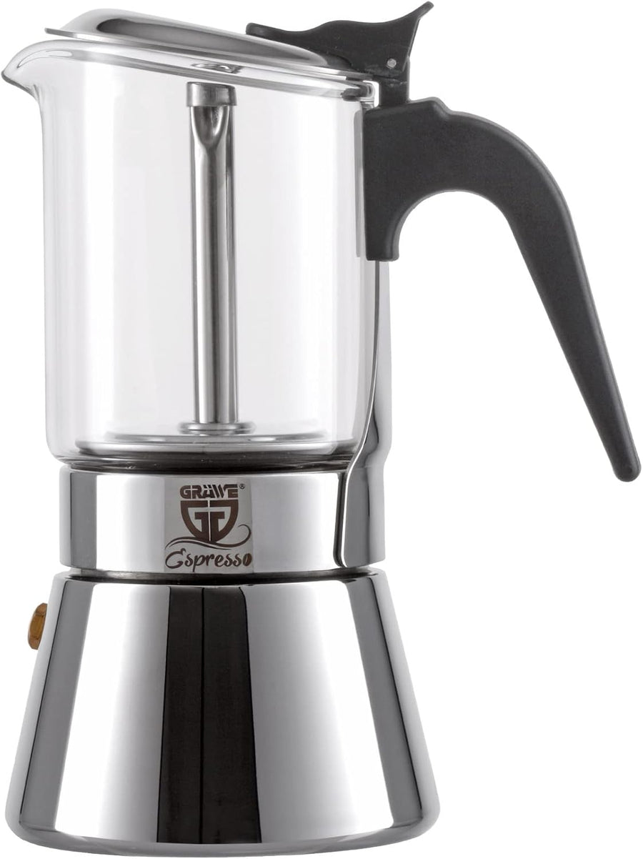 GRÄWE Espressokocher aus Edelstahl mit Glaskanne, für Induktion und alle Herdarten geeignet, spülmas