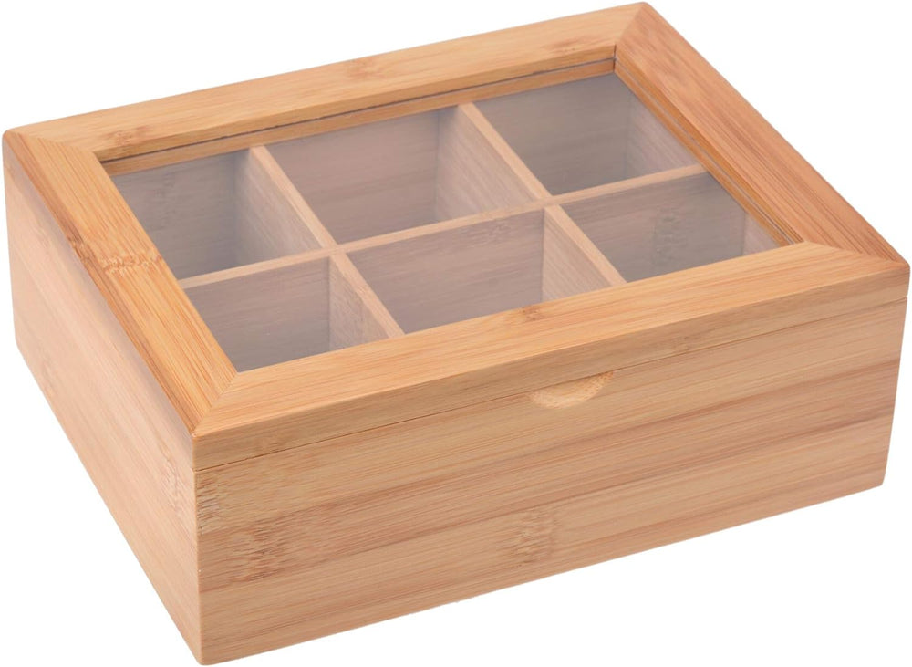 GRÄWE Aufbewahrungsbox aus Bambus mit 6 Fächern, klappbarer Deckel, Sichtfenster, Box zur Aufbewahru