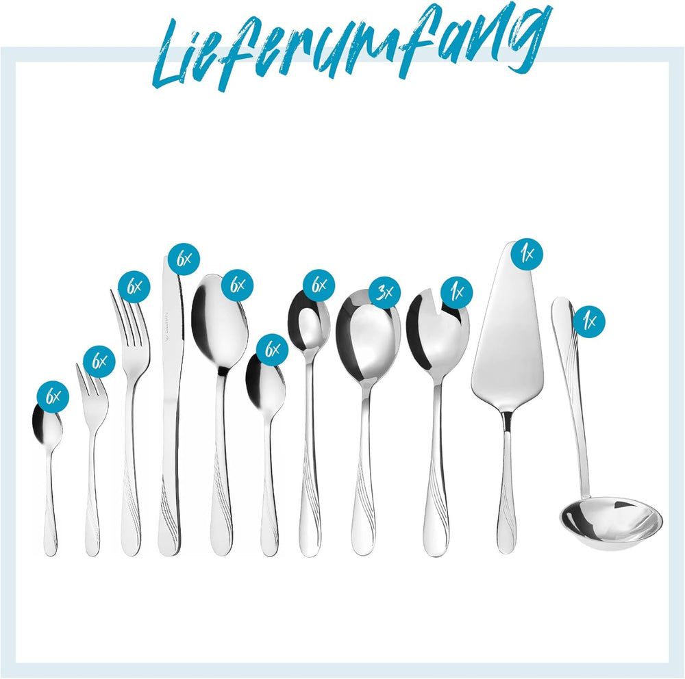 GRÄWE Besteck-Set für 6 Personen, 48-teilig - Tafelbesteck mit Vorlege- und Servierbesteck aus Edels