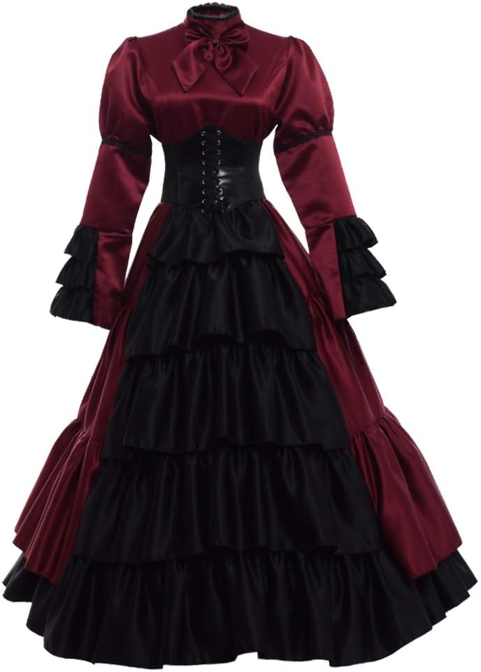 GRACEART Damen Gothic Viktorianisches Kleid Renaissance Maxi Kostüm, Black, XXL, XXL