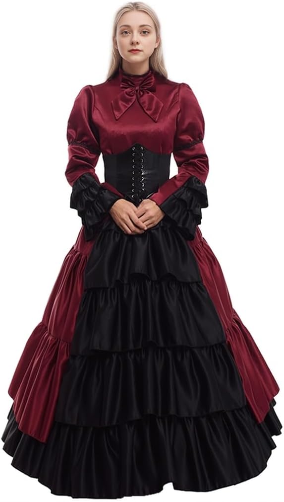 GRACEART Frauen mittelalterlichen viktorianischen Kostüm Vintage Rüschen Fancy Dress mit Krinoline u