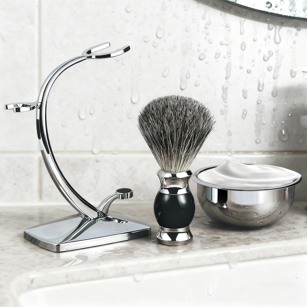 GRUTTI Rasierset für Herren, universeller - Rasierpinselhalter, schwerer Edelstahl-Rasierpinsel-Stän