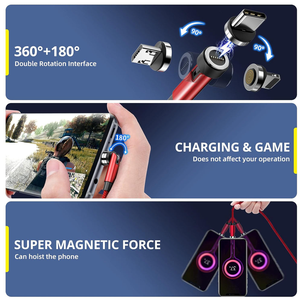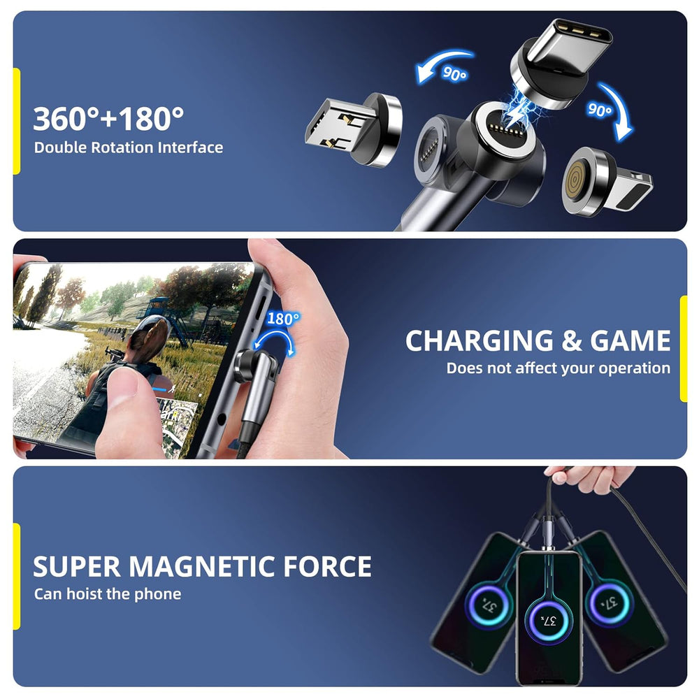 USB C kabel [4Pack 1m+2m+2m+3m] 3 in 1 ladekabel magnetisch 540 Grad Drehbarkeit Gerätestecker,Daten