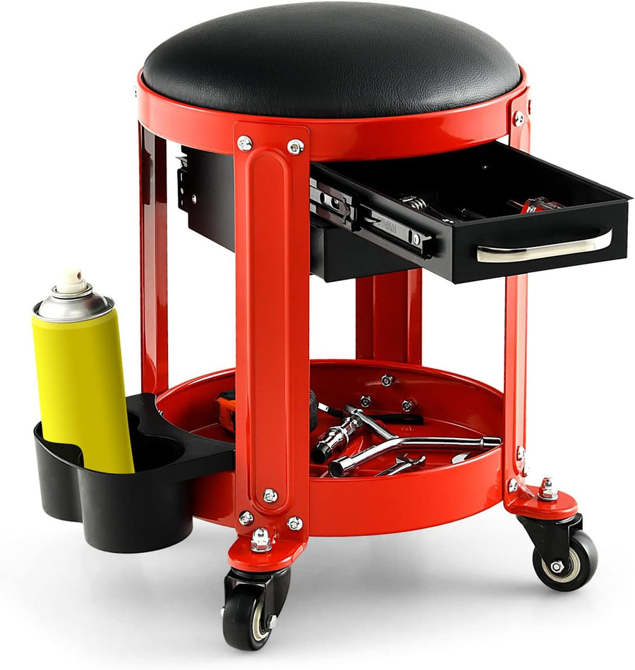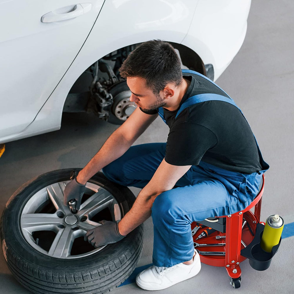 GYMAX Werkstatthocker, Werkstattsitz mit 4 Universalräder, Werkstattstuhl bis 150 kg belastbar, Mech