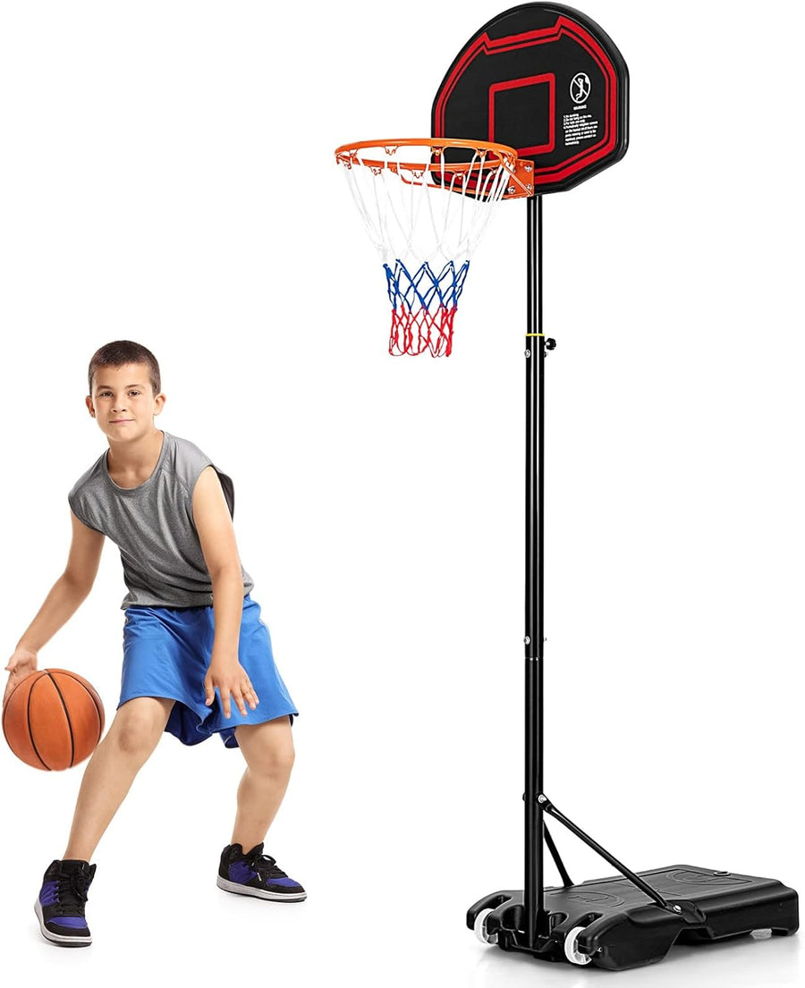 GYMAX Basketballkorb 155-210 cm, Höhenverstellbarer Basketballständer mit Netz & bruchfester Rückwan