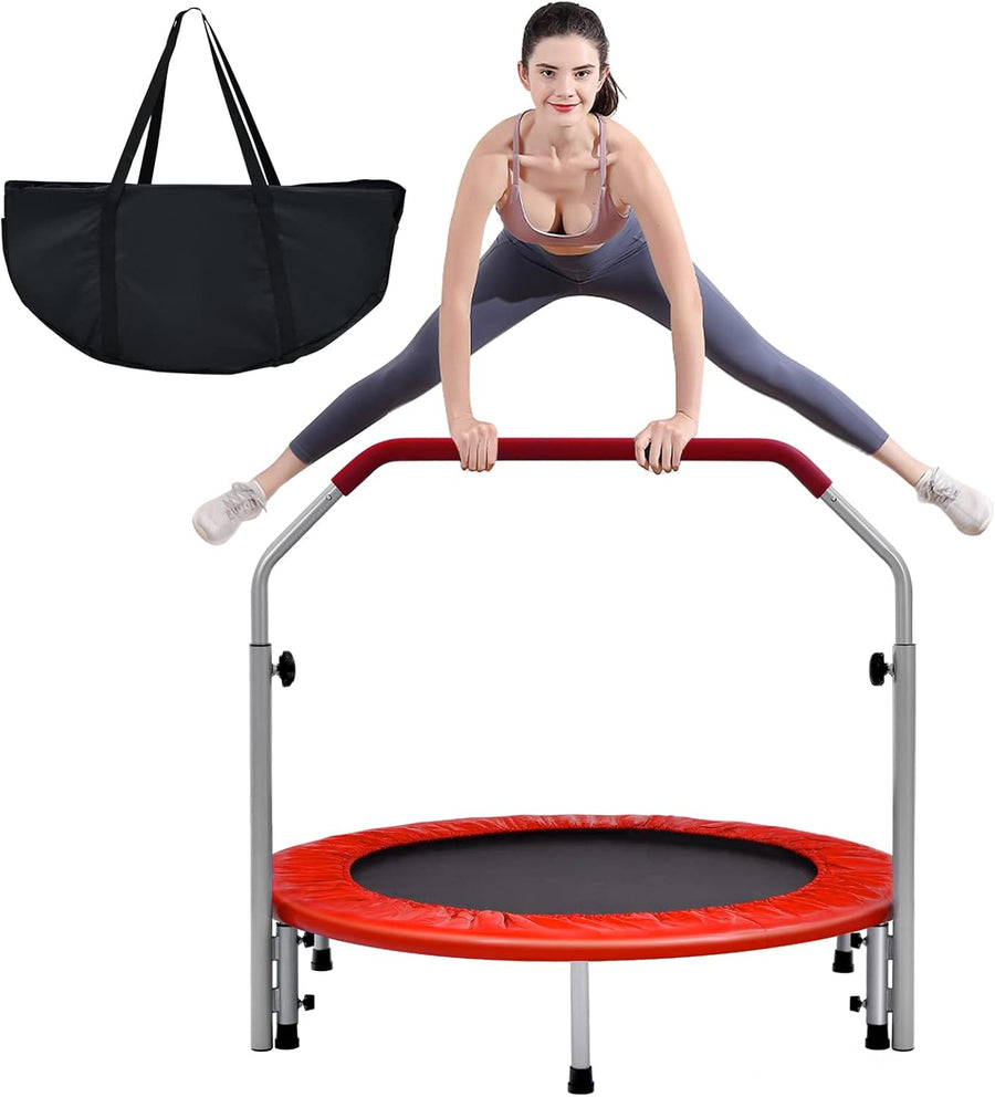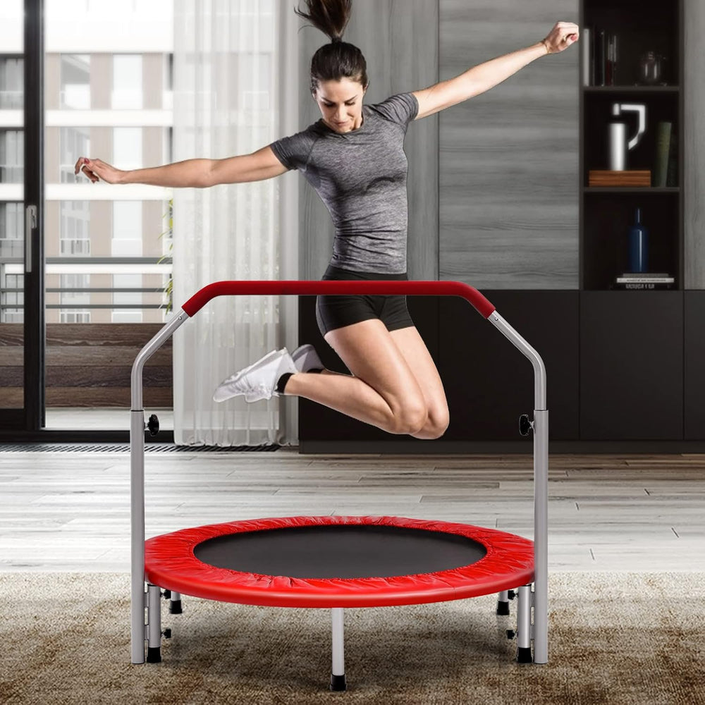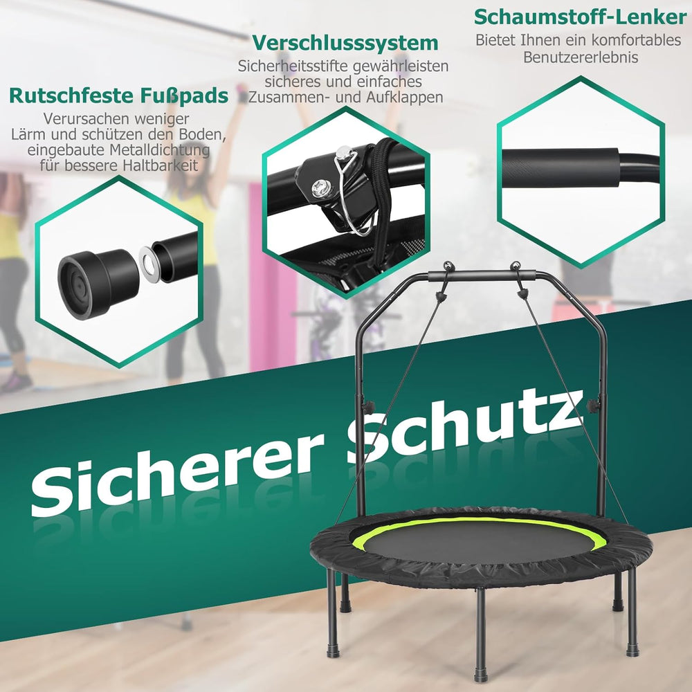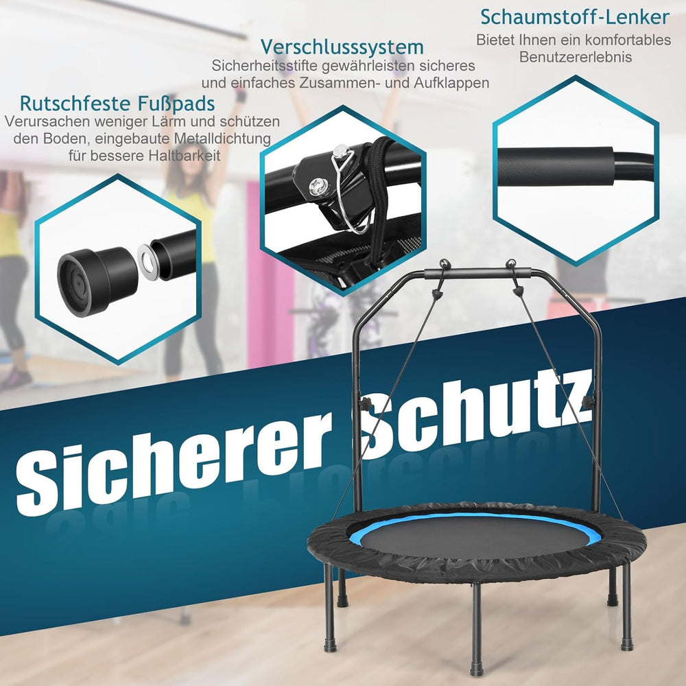 GYMAX Ø101 cm Mini Trampolin klappbar, Fitness Trampolin mit 4-stufig verstellbarem Haltegriff, Gart