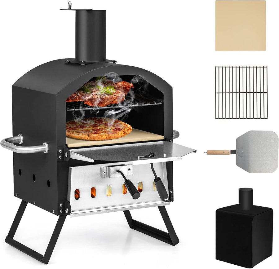 GYMAX Tragbarer Pizzaofen, Pizzabäcker mit klappbaren Beinen & Griffen, holzbefeuerter Pizzagrill mi