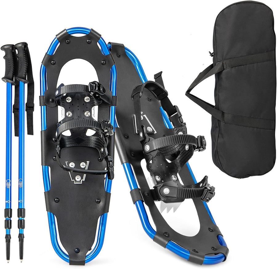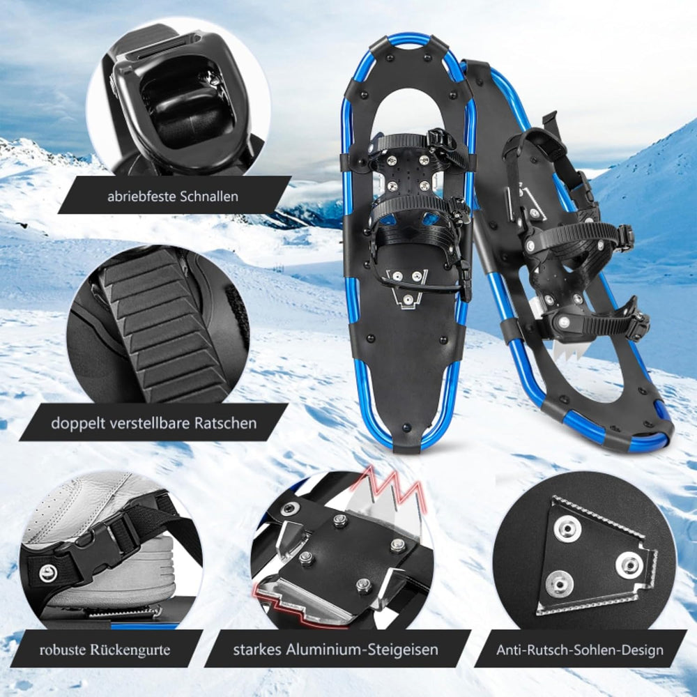 GYMAX 53/63/76 cm Schneeschuhe, leichte Geländeschneeschuhe-Set, 3 in 1 Schneeschuhset mit Trekkings