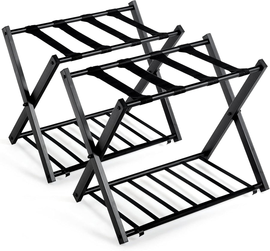GYMAX Klappbarer Kofferständer, Doppelschichter Kofferbock mit 4 stabilen Gurten & 2-Stöckiger Desig