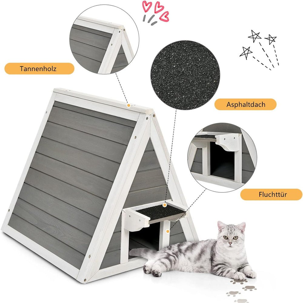GYMAX 50 x 55 x 52 cm Katzenhaus mit Asphaltdach & Tür, Wetterfeste Katzenhöhle aus Holz, Katzenhütt