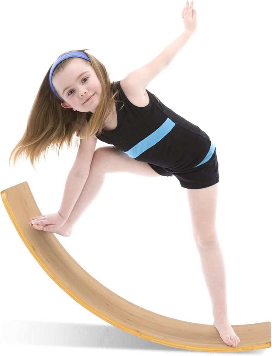 GYMAX Balancierbrett, Kurviges Board bis 220kg belastbar, Balance Board aus Birkenholz, Wackelbrett