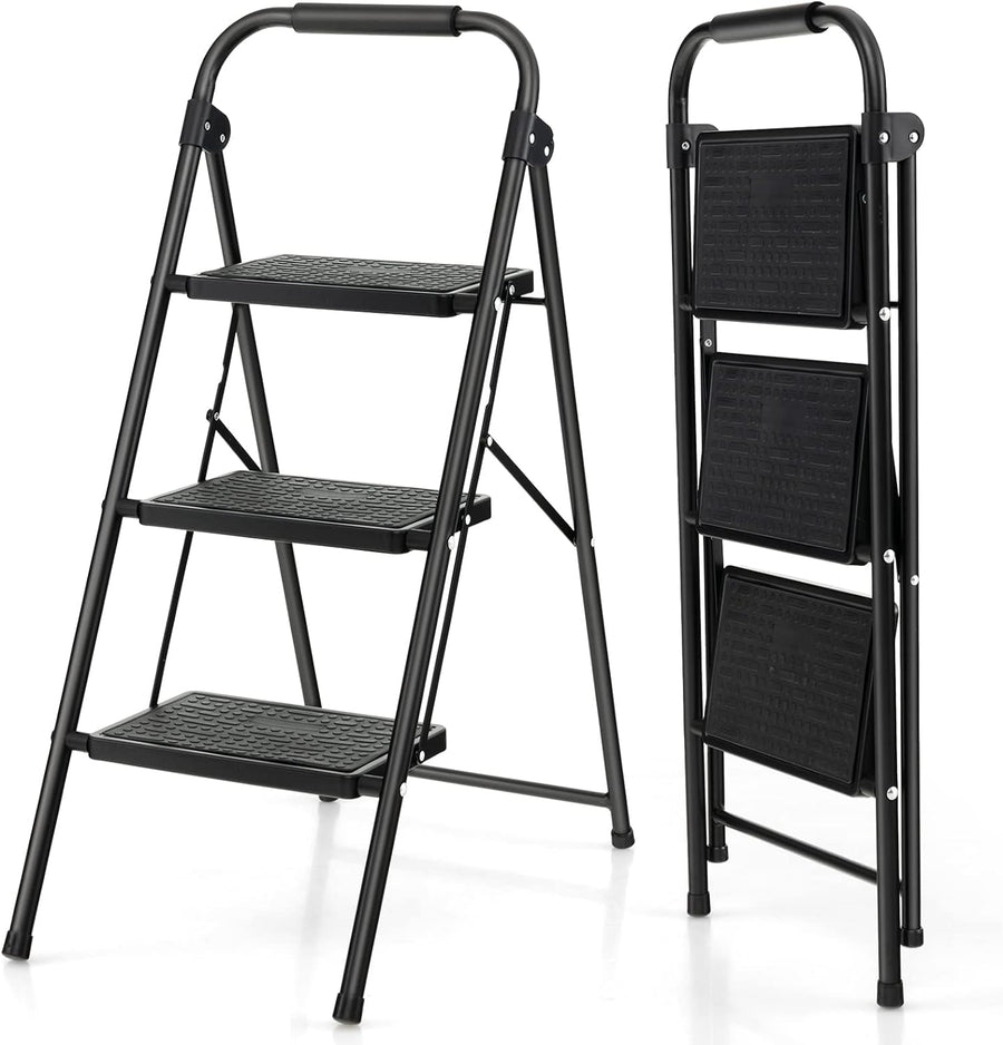 GYMAX Trittleiter 3 Stufen, klappbare Stufenleiter mit rutschfesten & Breiten Stufen, leichte Stehle