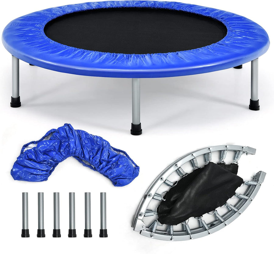 GYMAX Fitness Trampolin φ101cm, leise faltbares Mini Trampolin bis zu 150 kg Belastbar, Gartentrampo