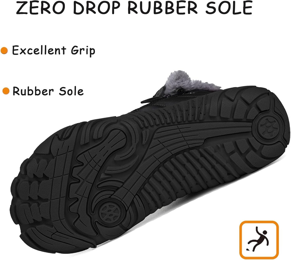 Unisex Kinder Barfussschuhe Winter Stiefel Warm Gefütterte Schneestiefel,Gr.29-39 33 EU Dullschwarz,