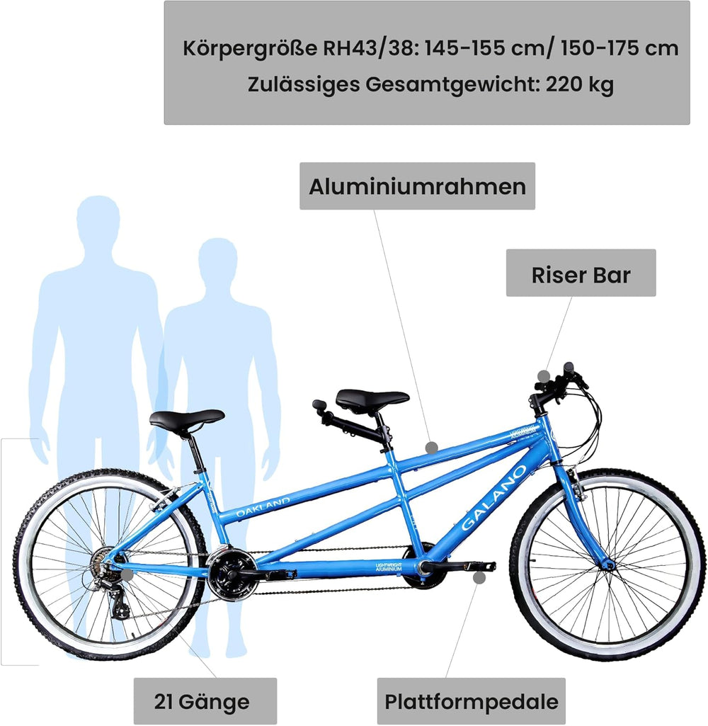 Galano Tandem Fahrrad 2 Personen Mountainbike 21 Gang Schaltung ab 145 cm Hardtail MTB Damen und Her
