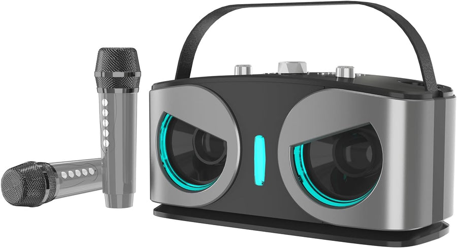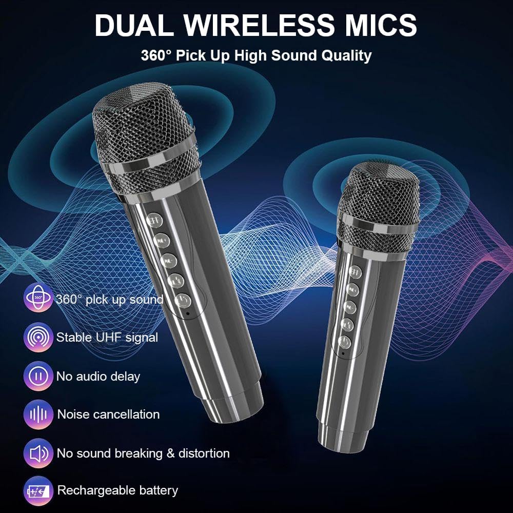 Karaoke Maschine mit 2 Mikrofonen, Tragbare Karaoke Anlage mit DJ-Lichtern für Partys zu Hause, im F