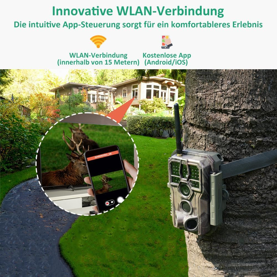GardePro E8 Wildkamera WLAN mit App 48MP H.264 1296P Video, 27m Infrarot Nachtsicht Bewegungsmelder
