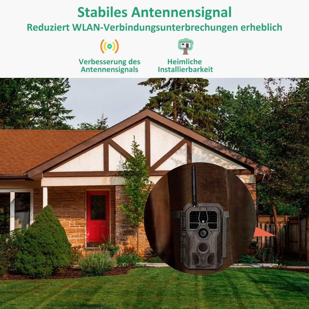 GardePro E6 Wildkamera WLAN Antenne 24MP 1296P mit Bewegungsmelder Nachtsicht No Glow Infrarot 940nm