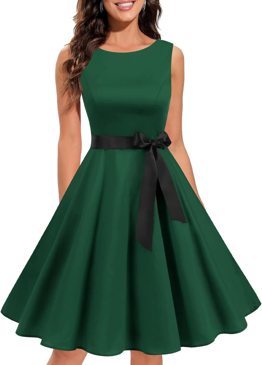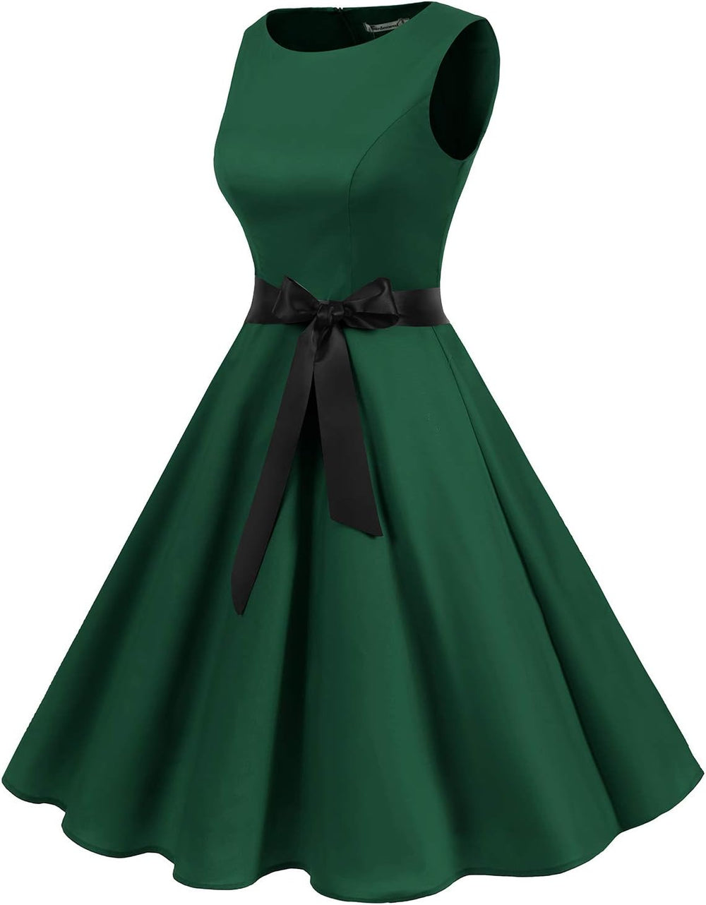 Gardenwed Damen 1950er Vintage Cocktailkleid Rockabilly Retro Schwingen Kleid Faltenrock Dark Green