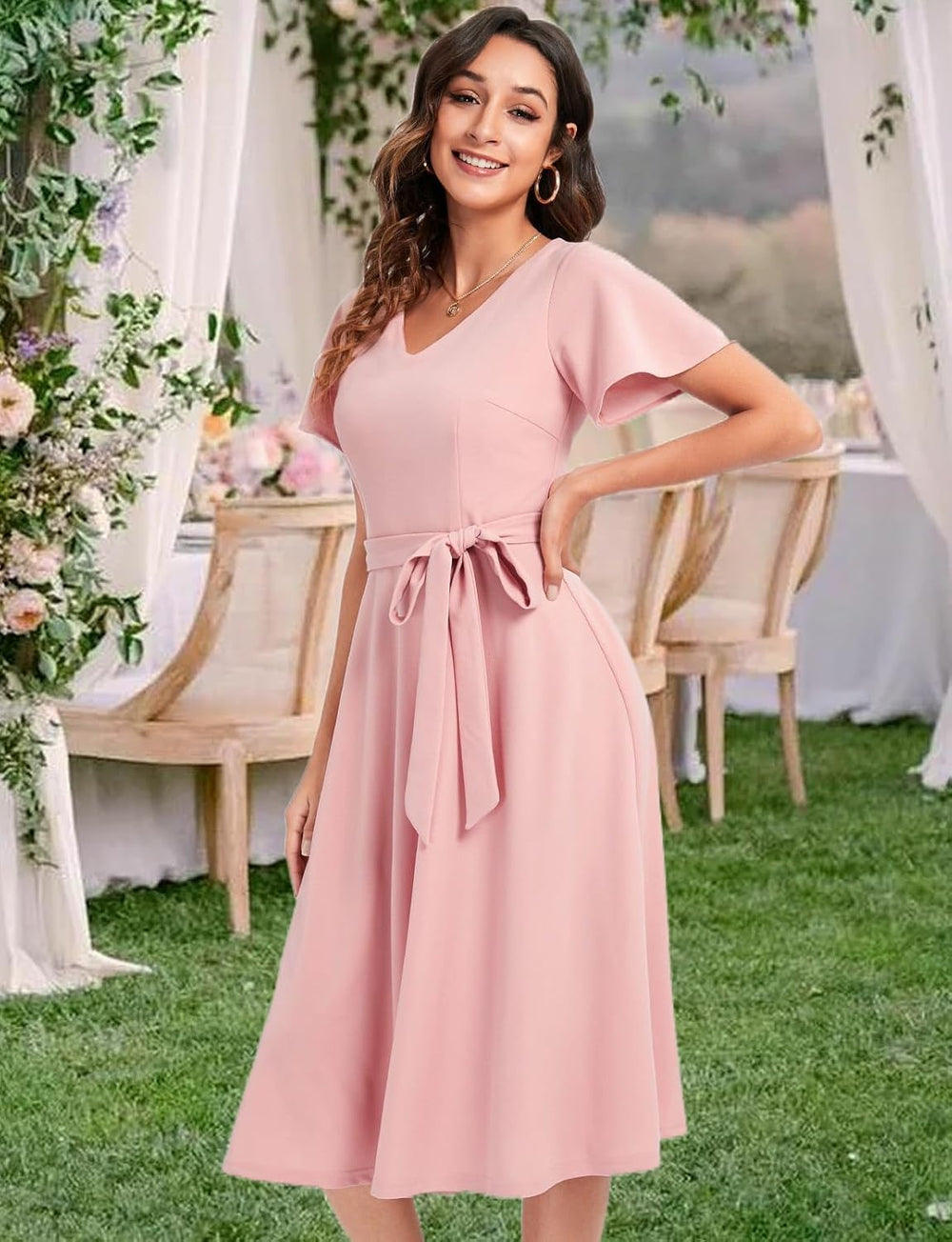 Gardenwed Abendkleid elegant für Hochzeit V-Ausschnitt Spitzen Cocktailkleid Damen Kurzarm Ballkleid