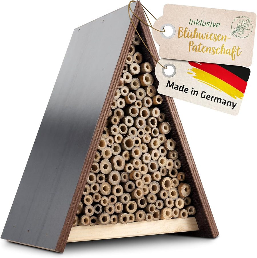 GARDIGO® Bienenhotel inkl. Blühwiesenpatenschaft I Unterschlupf für Wildbienen I Bienenhaus für den