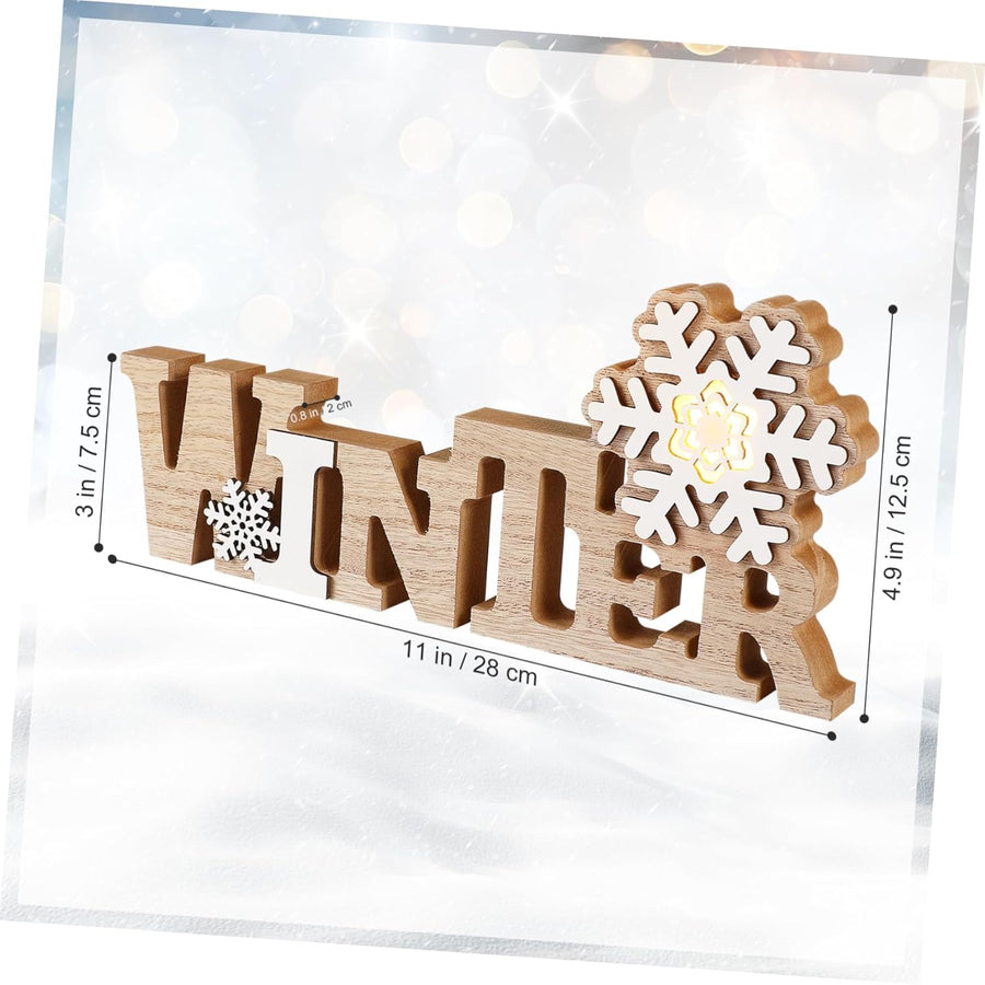 Garneck Holz-Tischdekoration, Winter-Holzschild, LED-Schneeflocke, Mittelstück, freistehend, Holzsch