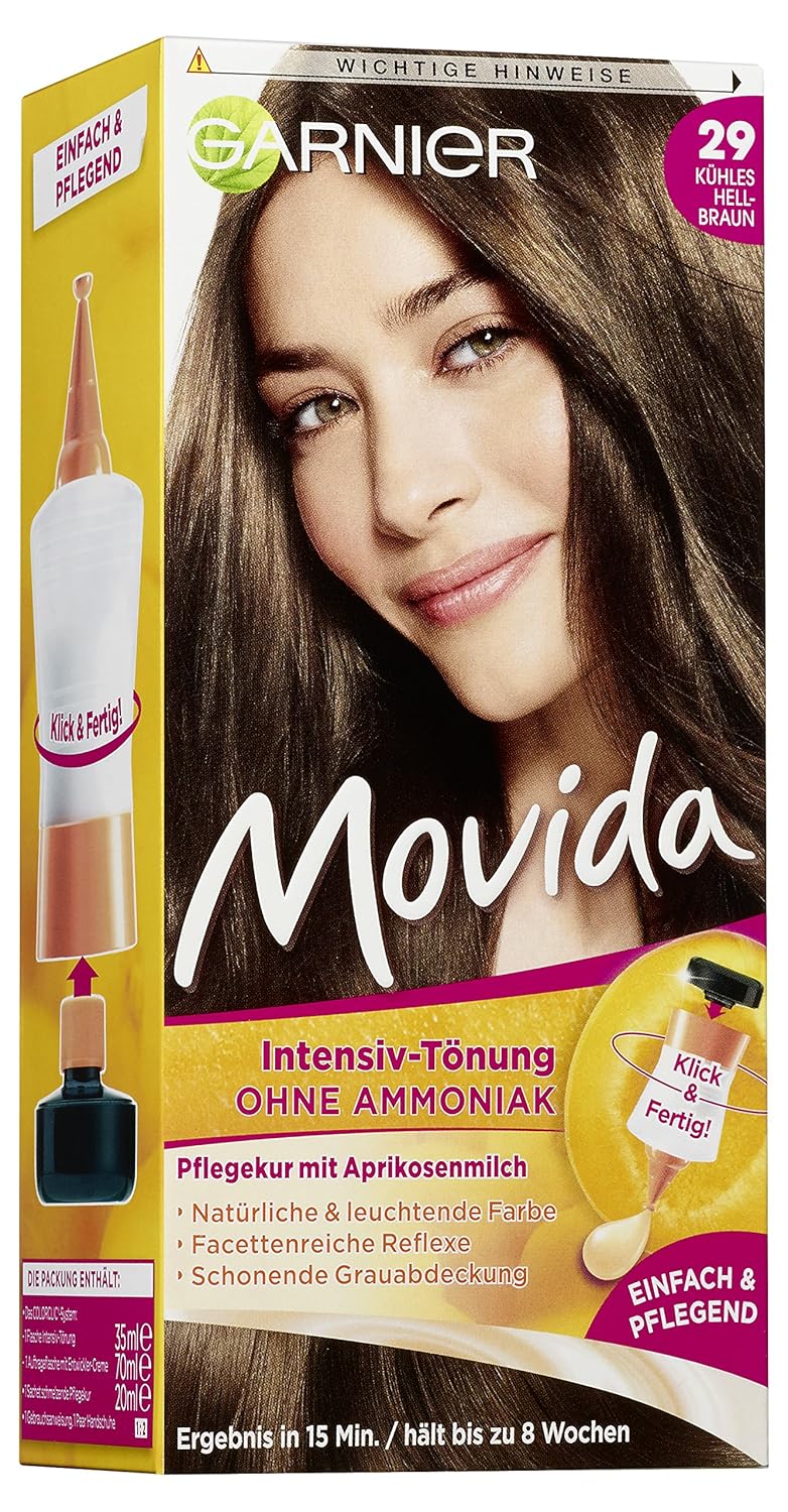 Garnier Tönung Movida Pflege-Creme / Intensiv-Tönung Haarfarbe 29 Kühles Hellbraun (für leuchtende F