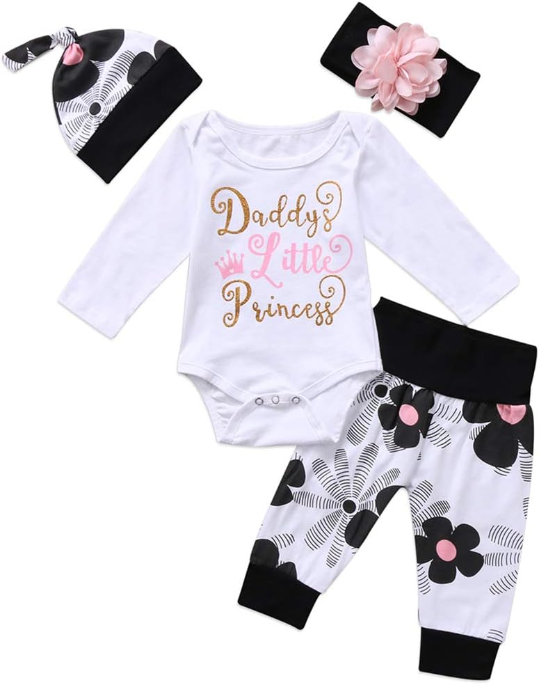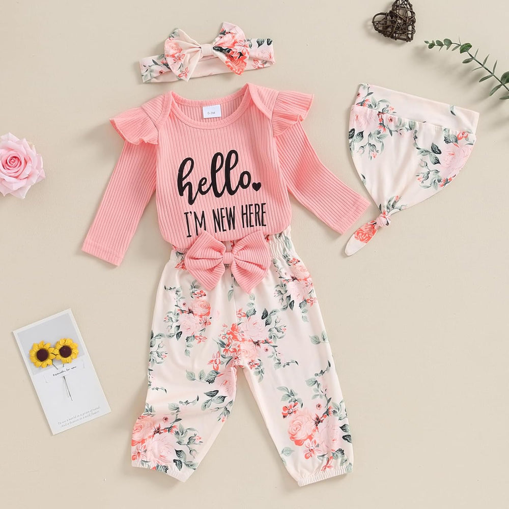 Geagodelia Neugeborene Baby Mädchen Kleidung Set Langarm Body Blumen Hose Mütze Stirnband Baby Outfi