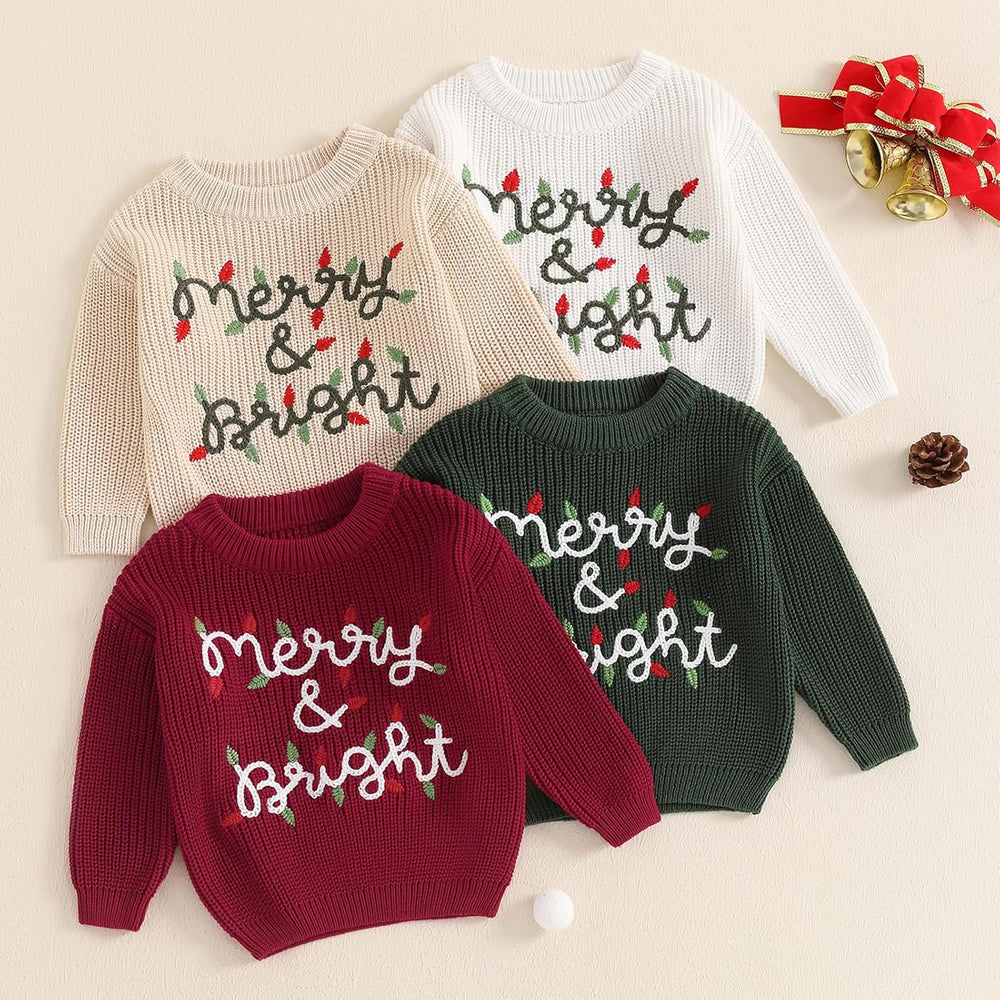 Geagodelia Weihnachtspullover Kinder Mädchen Jungen Mein Erstes Weihnachten Baby Pullover Strickpull