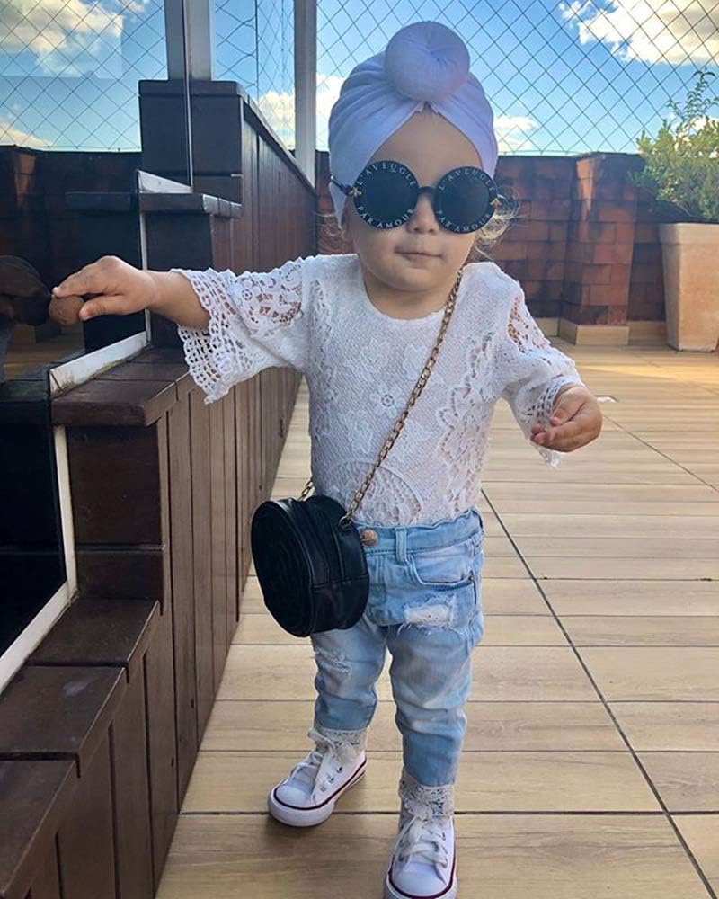 Geagodelia Babykleidung Set Baby Mädchen Kleidung Outfit Langarm Spitze Body Strampler + Jeans Hose