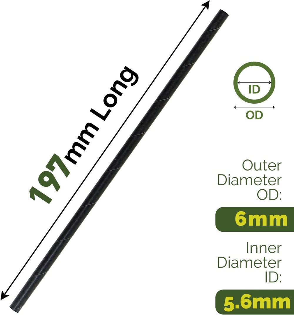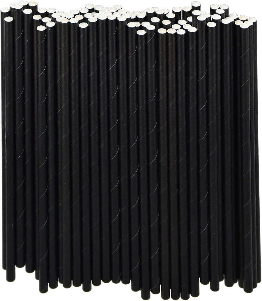 1000 Stück schwarze Papiertrinkhalme, 19,7x0,6cm - Grosspackung für Cocktails, Bars und Restaurants