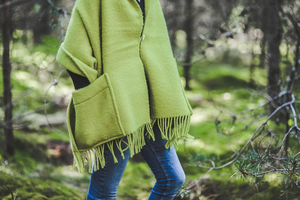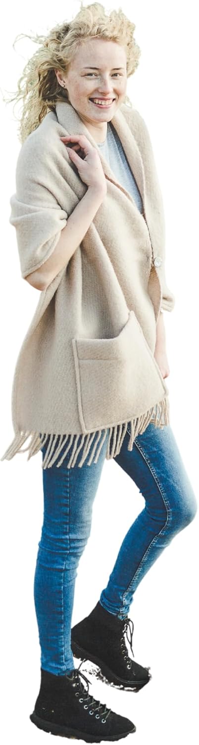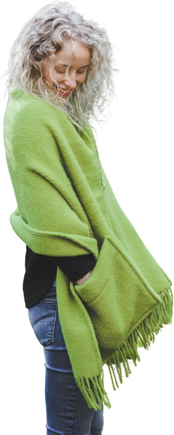 Damen Schal Schultertuch aus 100% Wolle mit Taschen - Poncho Stola 65x180cm + Fransen Tuch & Umschla