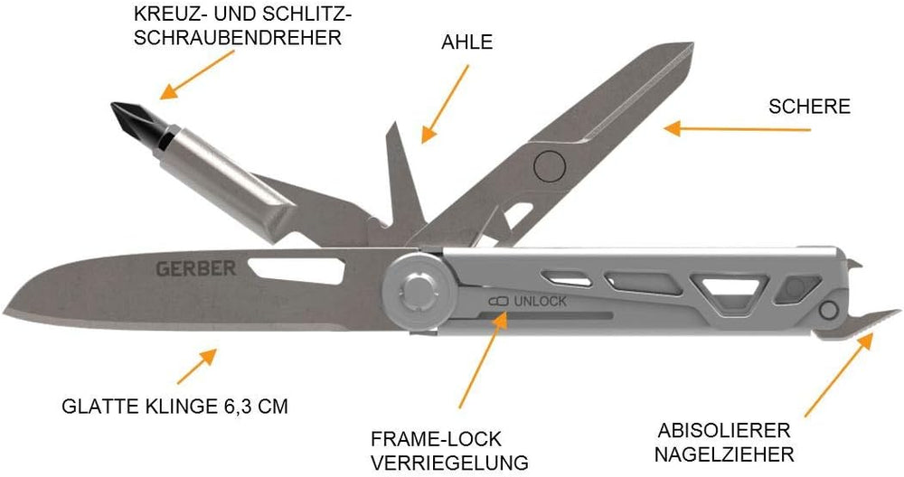 Gerber Multi-Tool mit 9 Funktionen und Gürtel-Clip, Crucial, Mit Gurtschneider und Liner-Lock-Verrie