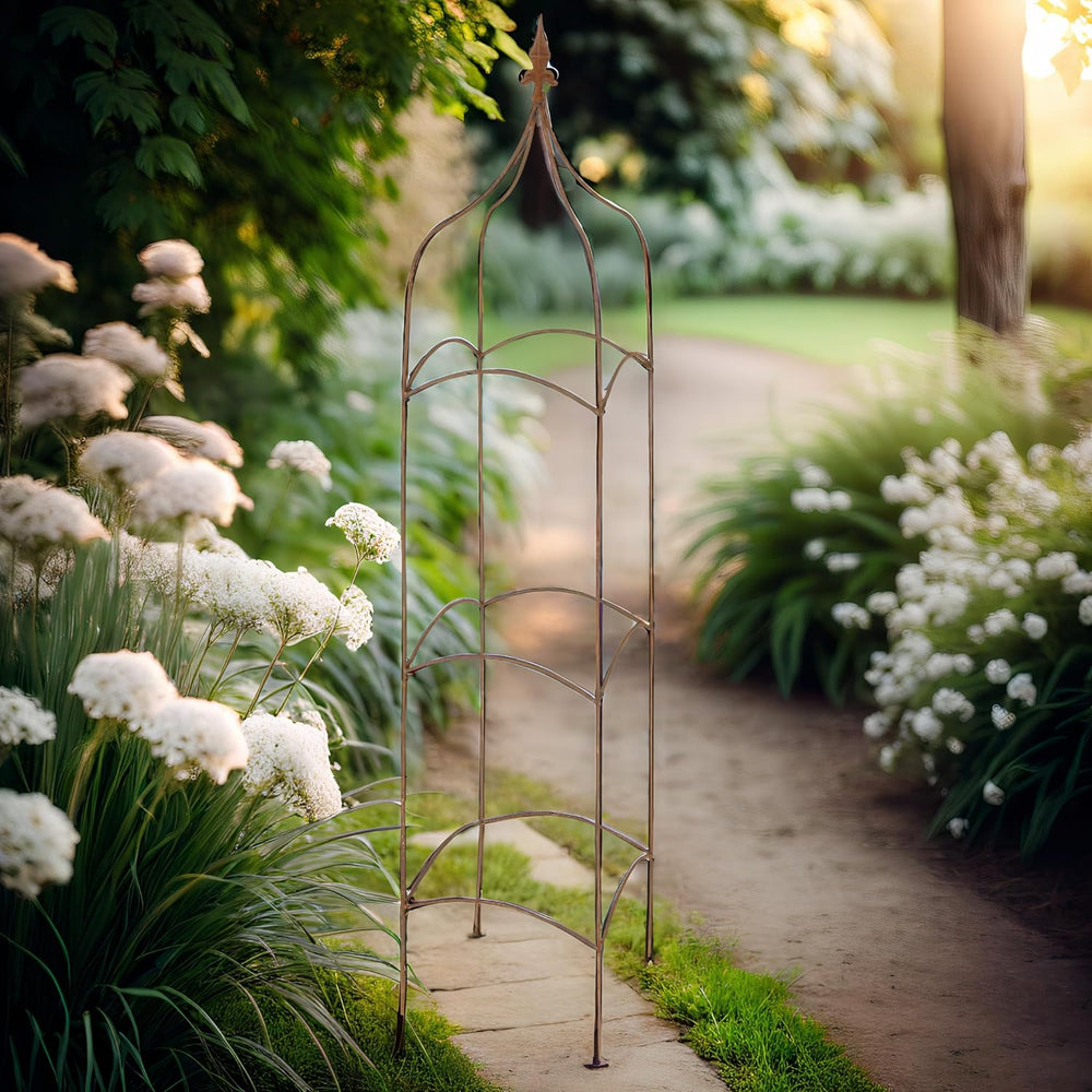 Gerry Rankgitter Rankhilfe Obelisk quadratisch m. Lilie Rankgerüst Metall Eisen Rost Deko (146cm hoc