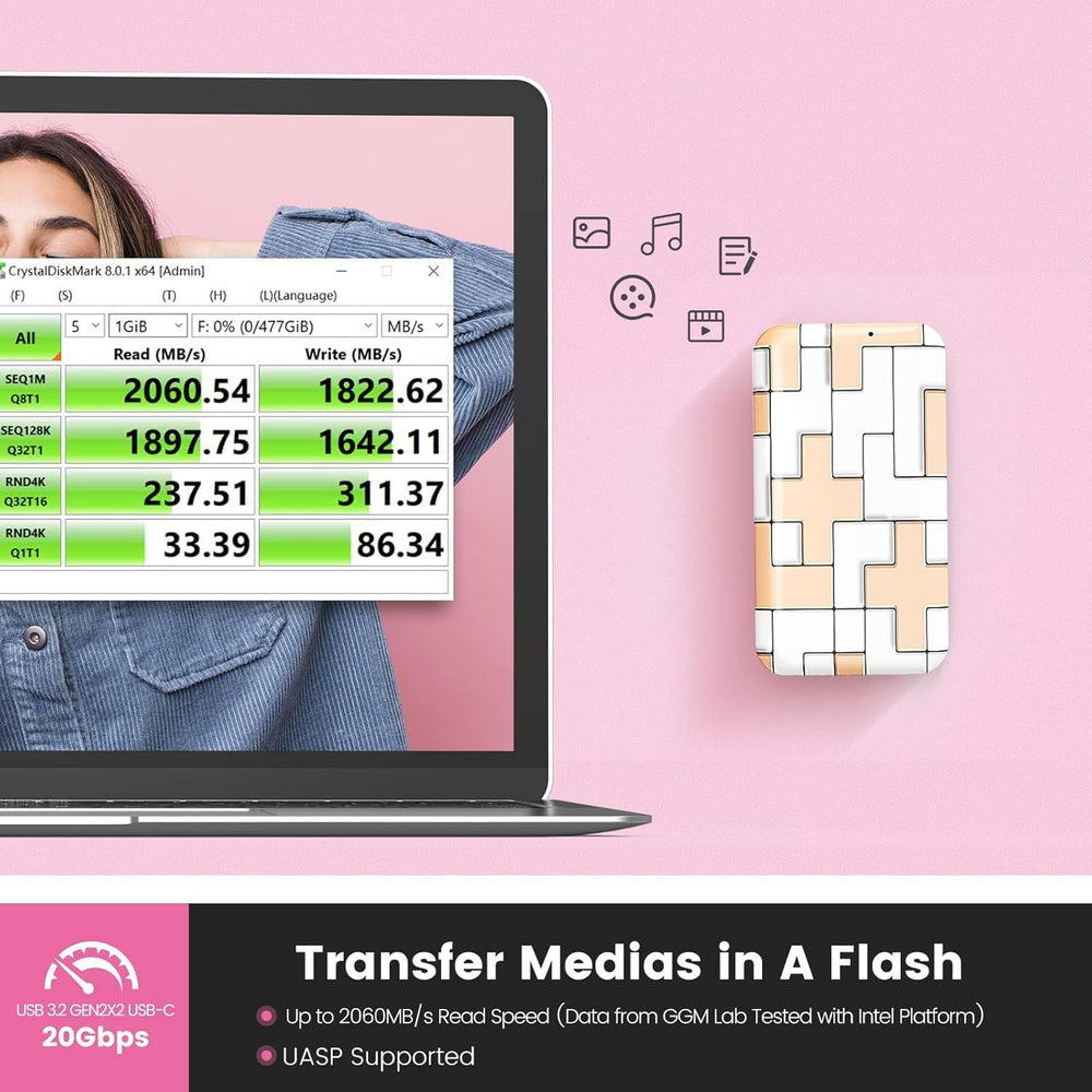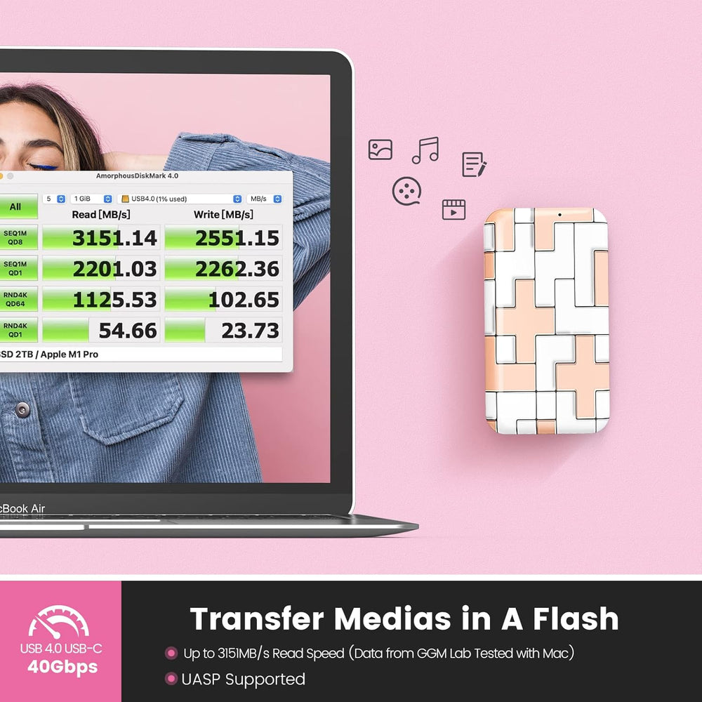 GiGimundo 512GB Portable SSD TLC, USB C Bis zu 3150 MB/s, USB4 Externes Solid State Drive, Geburtsta