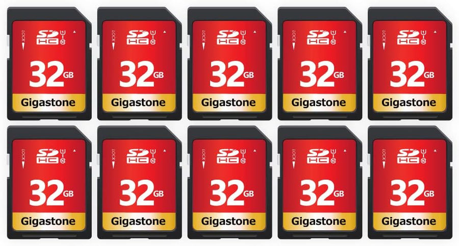 GIGASTONE 32GB SDHC Speicherkarte 10er-Pack, UHS-I U1 Klasse 10, bis zu 80 MB/Sek. für Digitalkamera