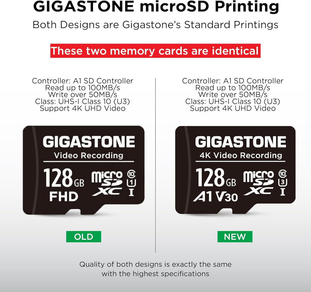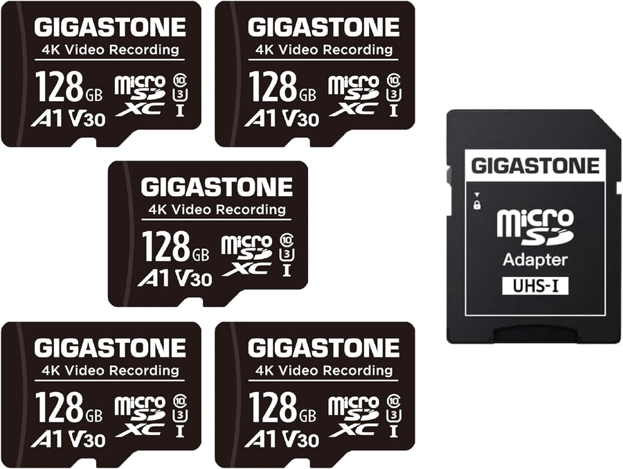 GIGASTONE 128GB MicroSDHC Speicherkarte 5er-Pack + SD Adapter, für Action-Kamera, GoPro, Drohne und
