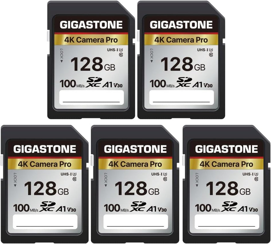 Gigastone 4K Kamera Pro 128GB SDXC Speicherkarte 5er-Pack mit bis zu 100 MB/Sek. für Digitalkameras
