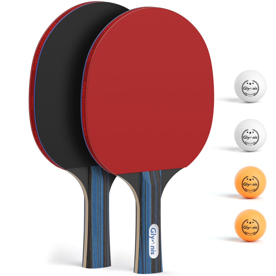 Glymnis Tischtennisschläger Tischtennis Set mit 2 Tischtennisschläger und 4 Tischtennisbälle, 1 Trag
