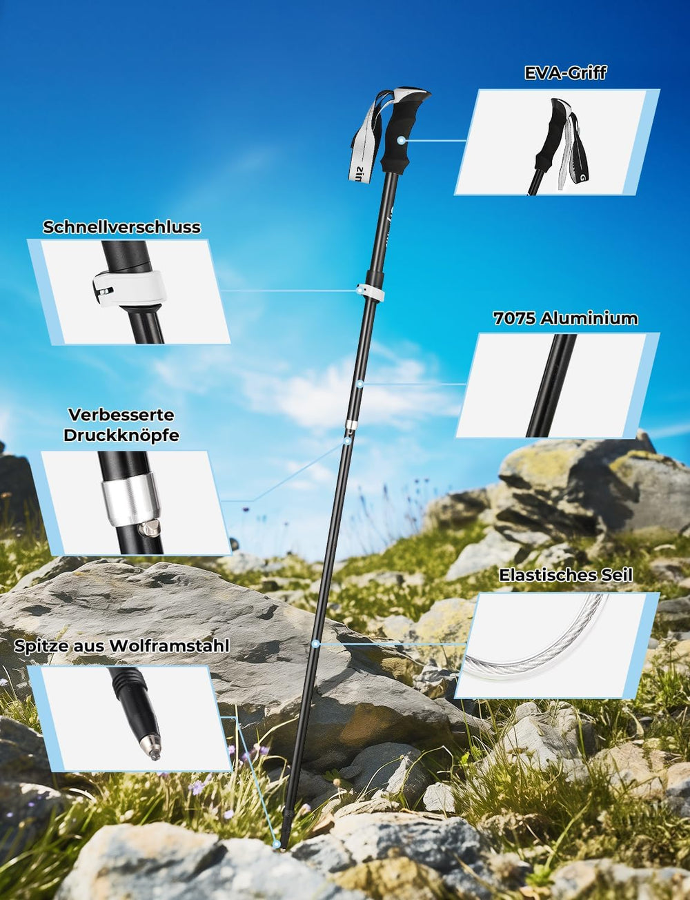 Glymnis Wanderstöcke Trekkingstöcke Walking Stöcke 7075 Aluminium Wanderstock verstellbar 110-130cm