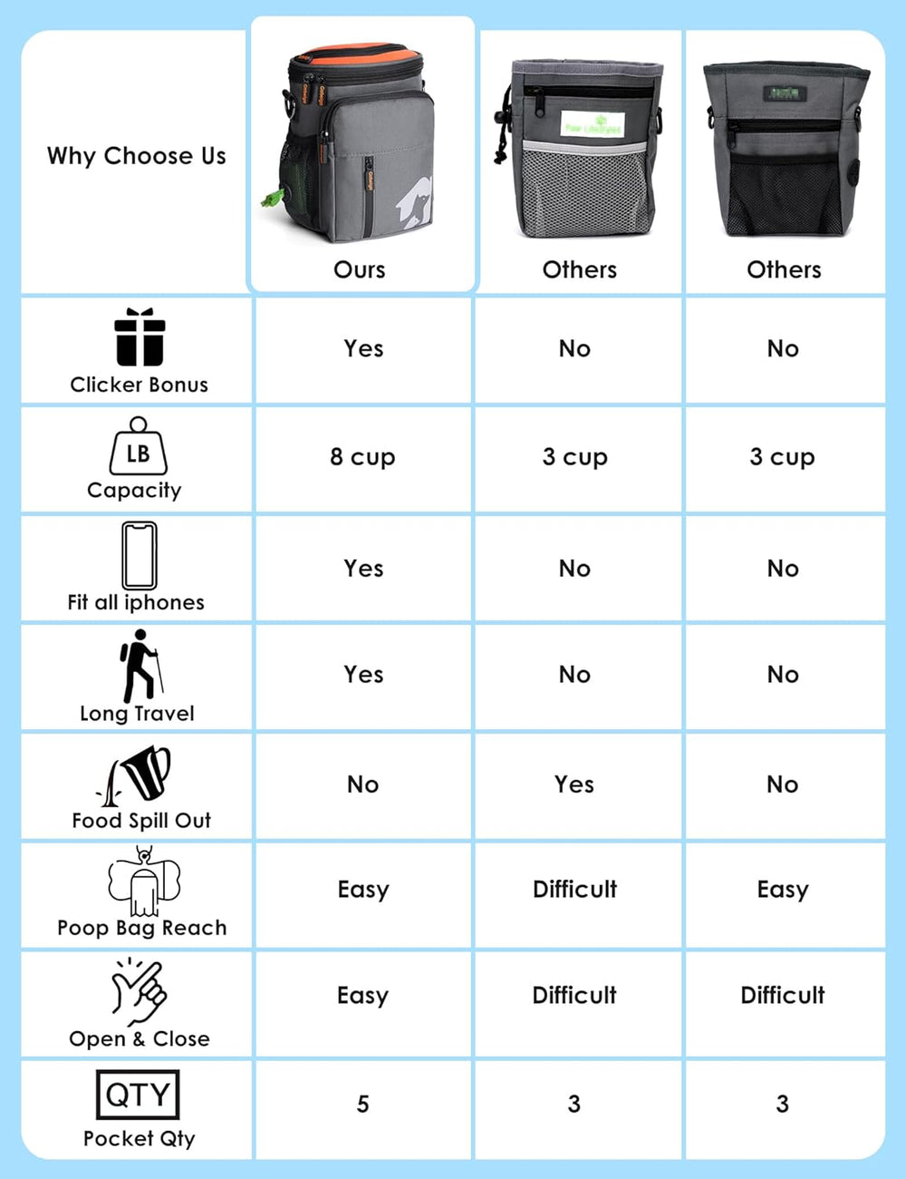Gobeigo Hundeleckerlis Tasche und Trainingsklicker, Leckerli Tasche für Hunde, Leckerlibeutel mit Ko