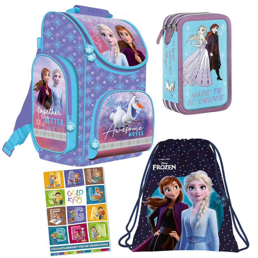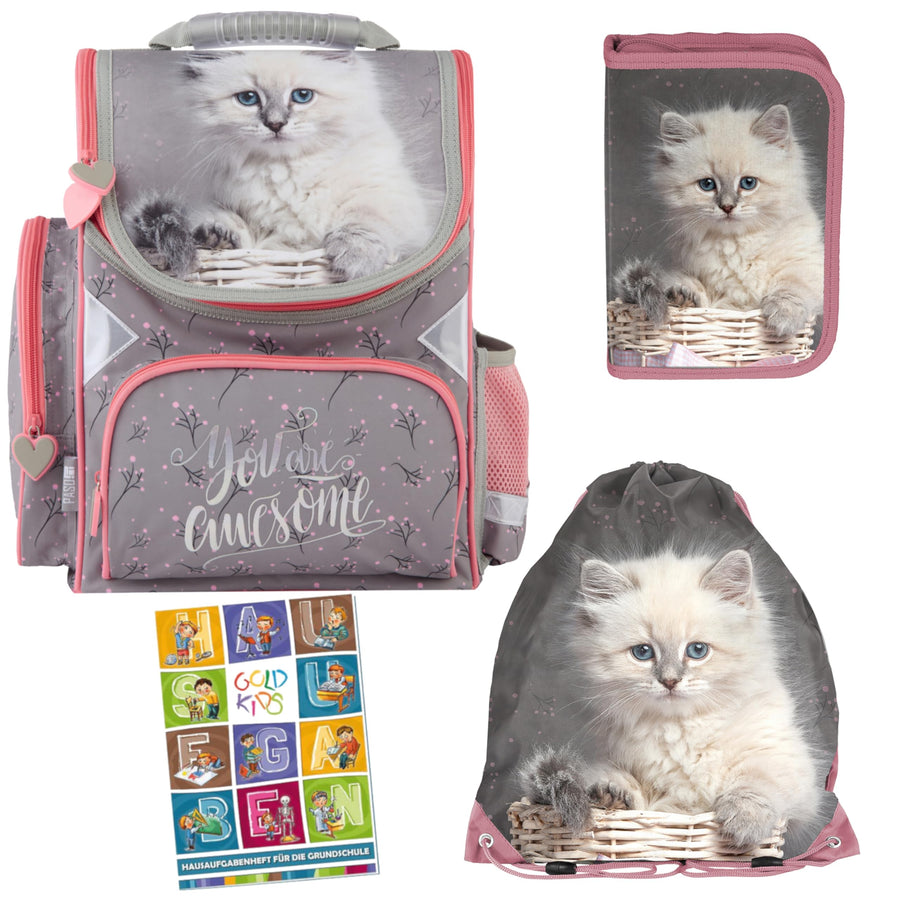 Goldkids - Schulranzen für Jungen und Mädchen, 3er-Set - Schul-Rucksack für Kinder mit Schlampermäpp