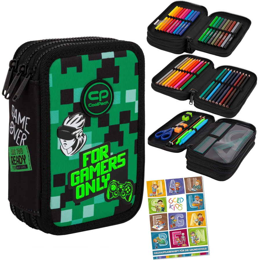 Goldkids - Federmäppchen 3 Fächer - Mäppchen für Mädchen - Federmappe 3-Fach Federtasche Gefüllte Sc