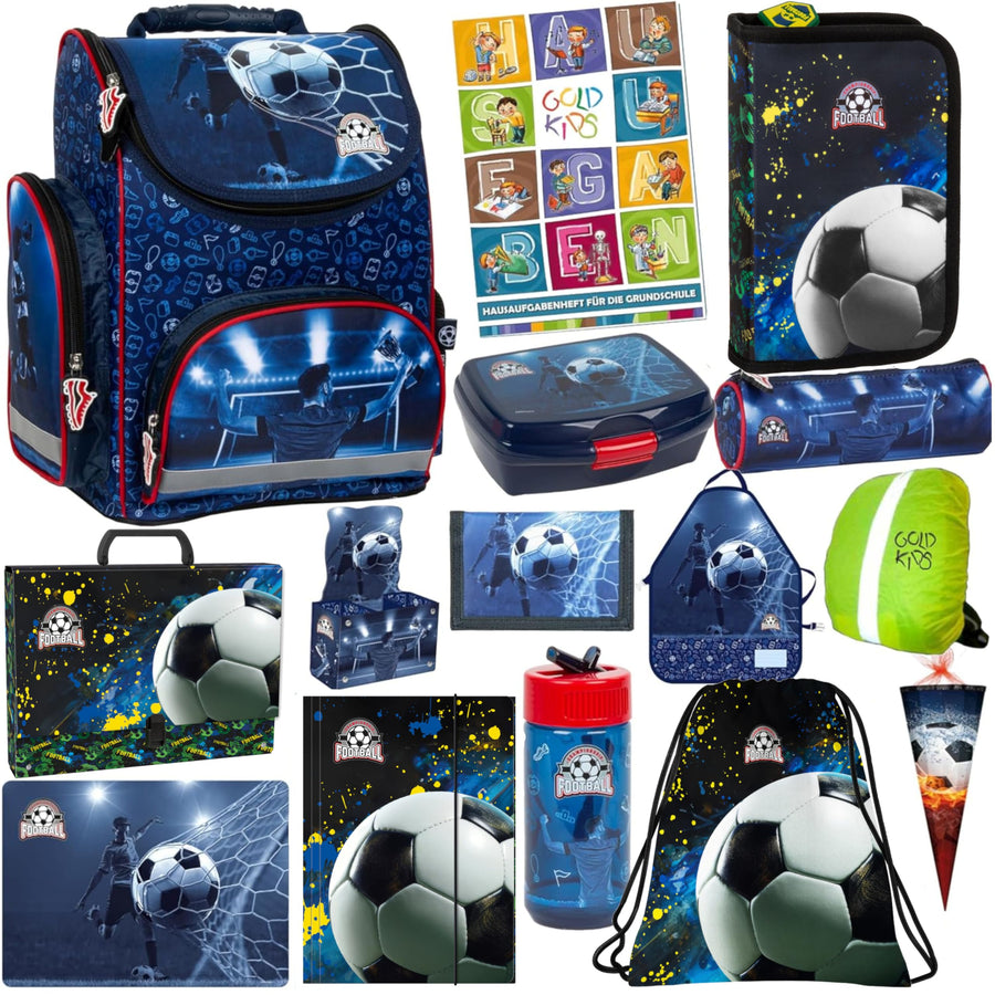 Goldkids - Schulranzen für Jungen und Mädchen, 14er-Set - Schul-Rucksack für Kinder mit Federmäppche