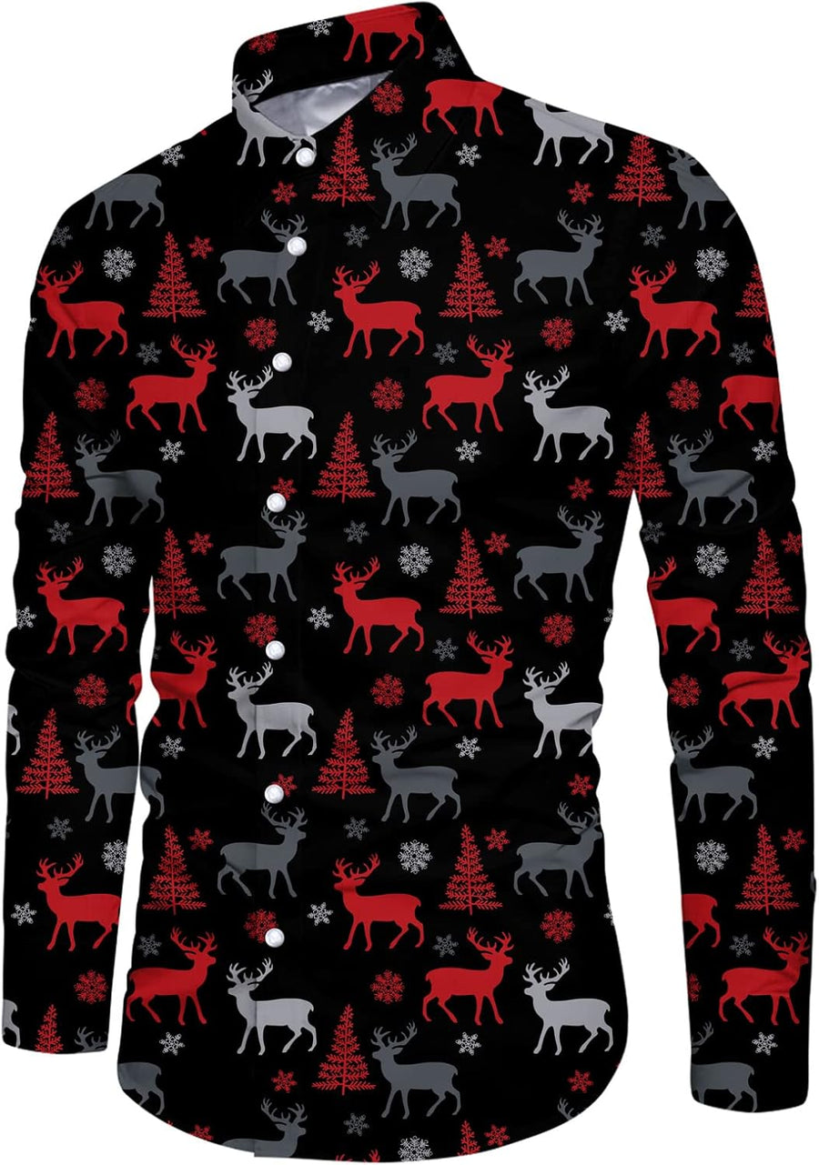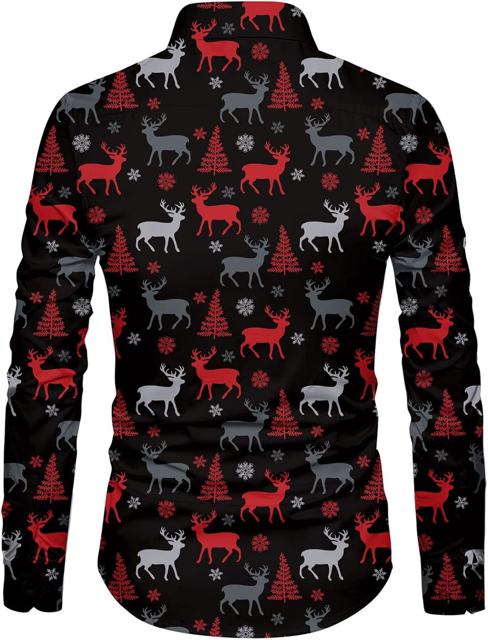 Goodstoworld Weihnachtshemd Herren Weihnachten Muster 3D Bedruckte Langärm Slim Fit Stehkragen Bügel