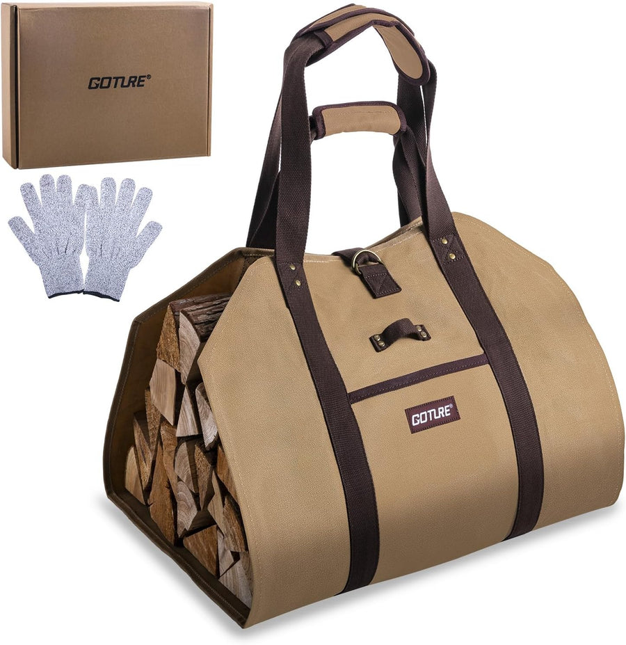Goture Tragetasche für Holztragetasche aus gewachstem Canvas mit 1 Paar Handschuhen, wasserabweisend