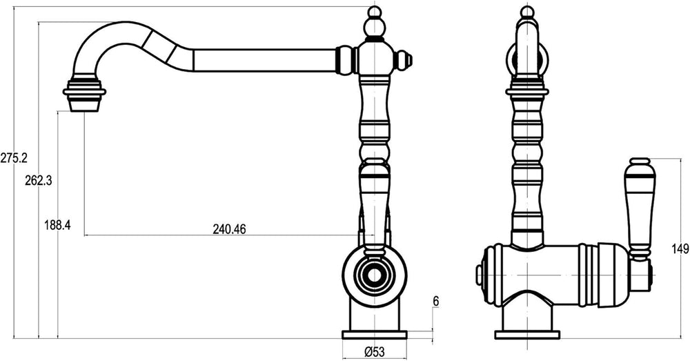 Grünblatt Niederdruck Küchenarmatur mit Absperrventil Chrom (C-Auslauf), C-Auslauf
