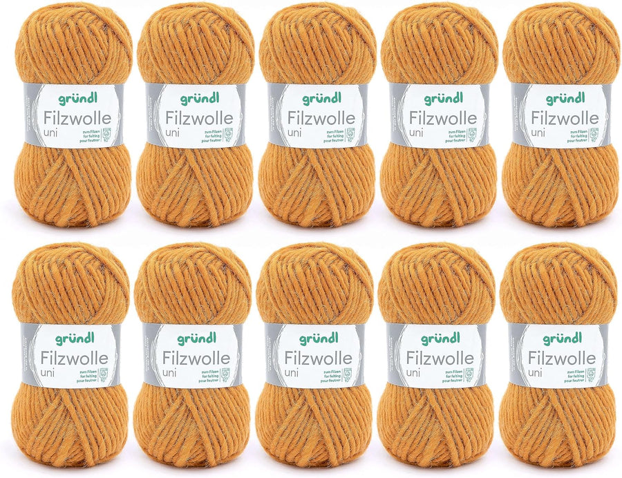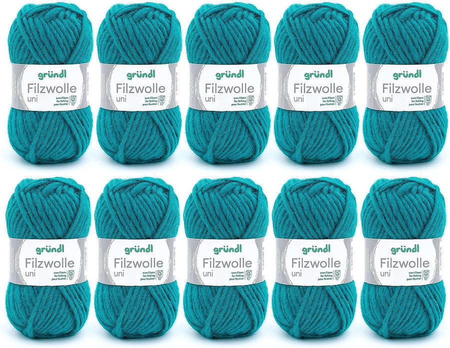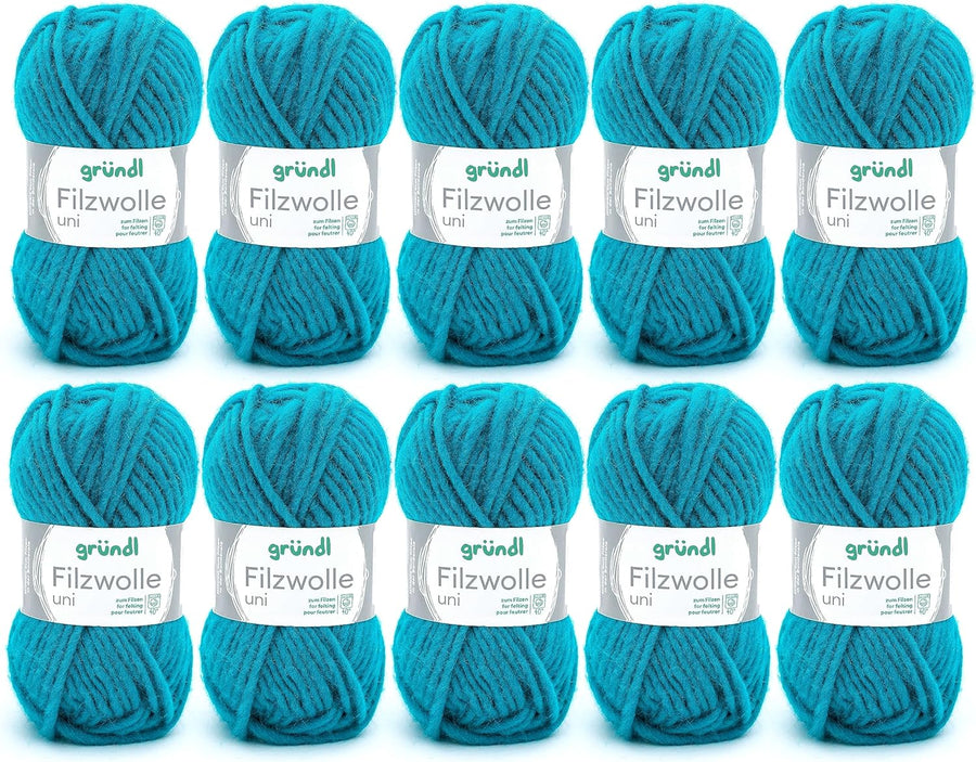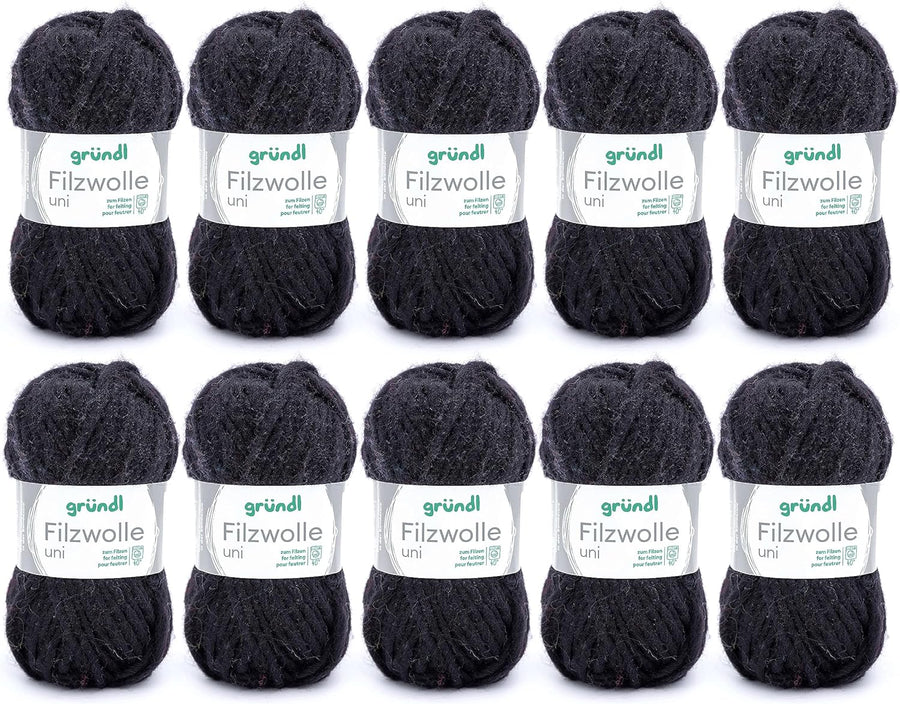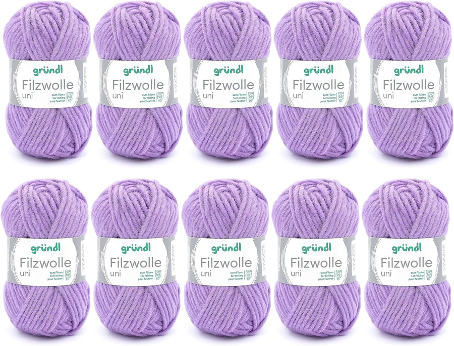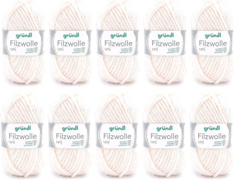 Gründl Filzwolle uni (Wolle zum Filzen, Stricken und Häkeln, Garn aus 100 % Schurwolle, 50 g / 50 m,