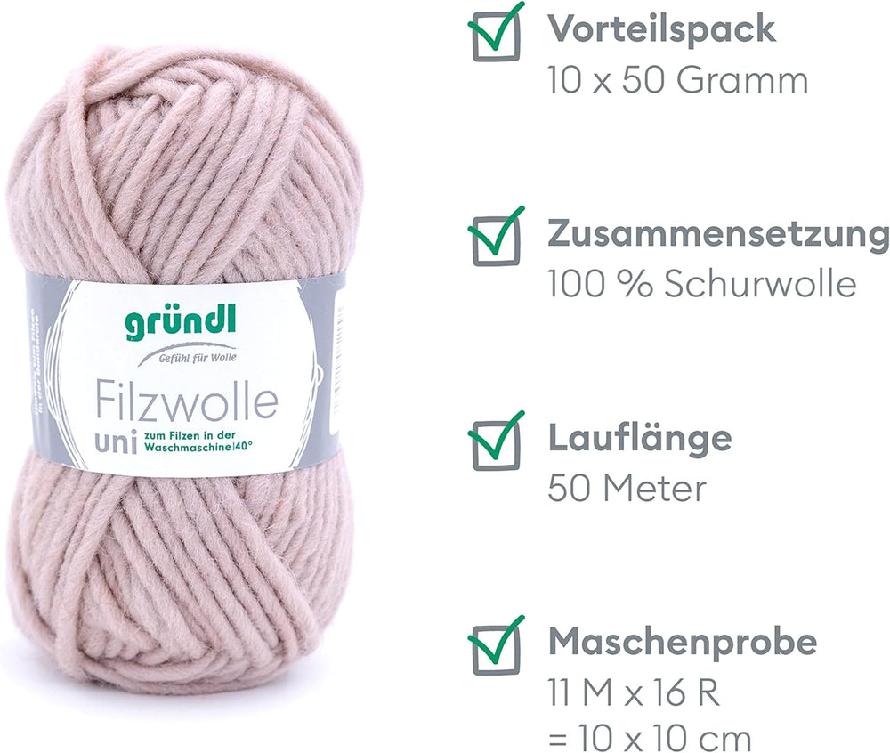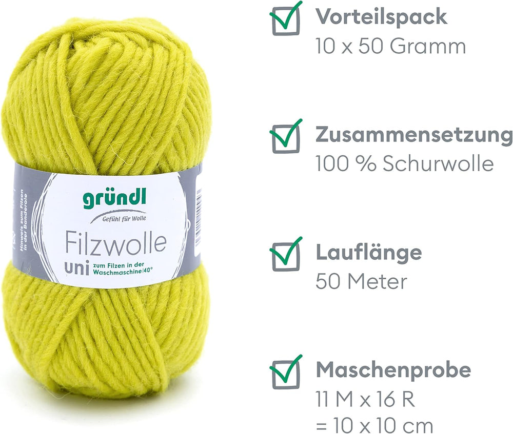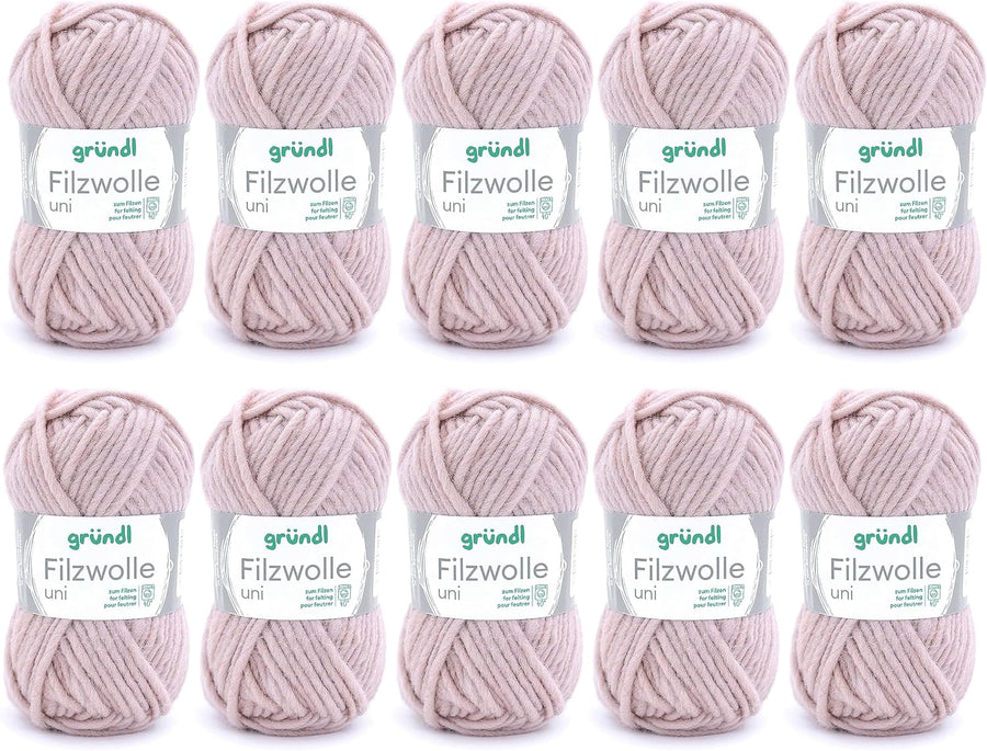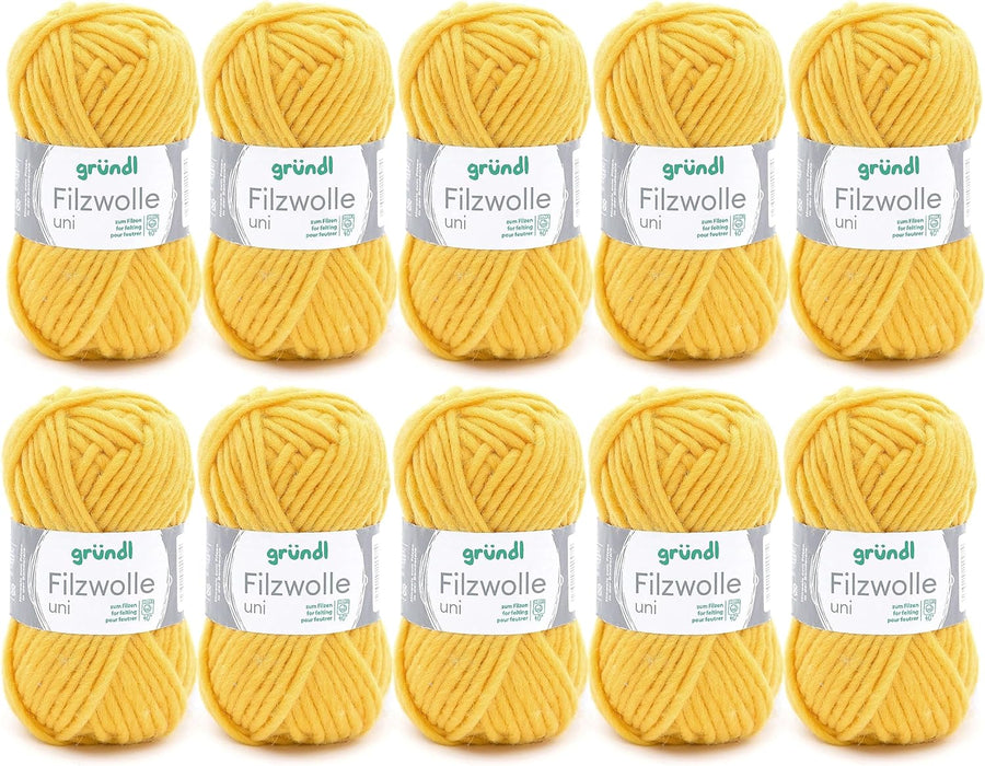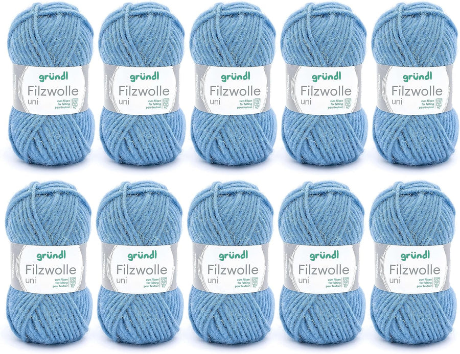 Gründl Filzwolle uni (Wolle zum Filzen, Stricken und Häkeln, Garn aus 100 % Schurwolle, 50 g / 50 m,