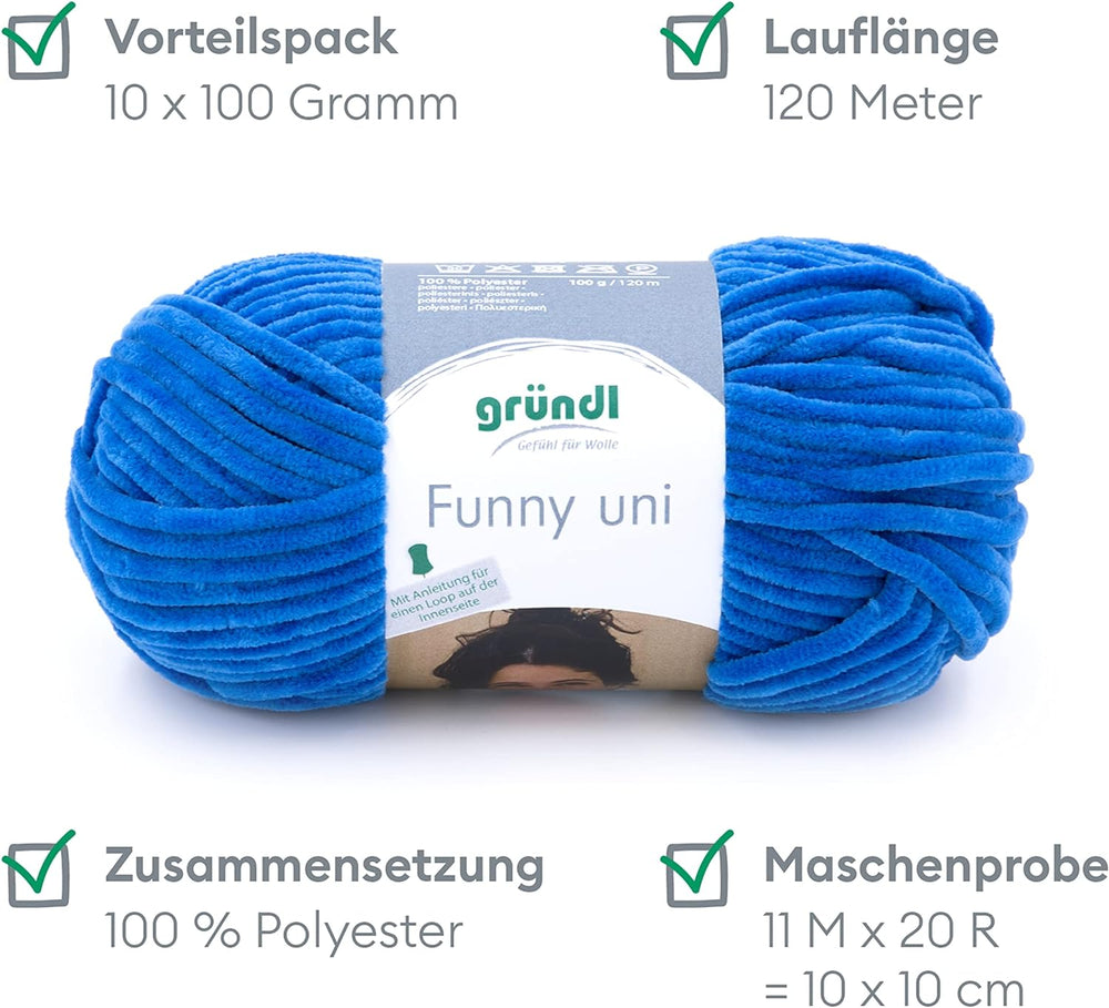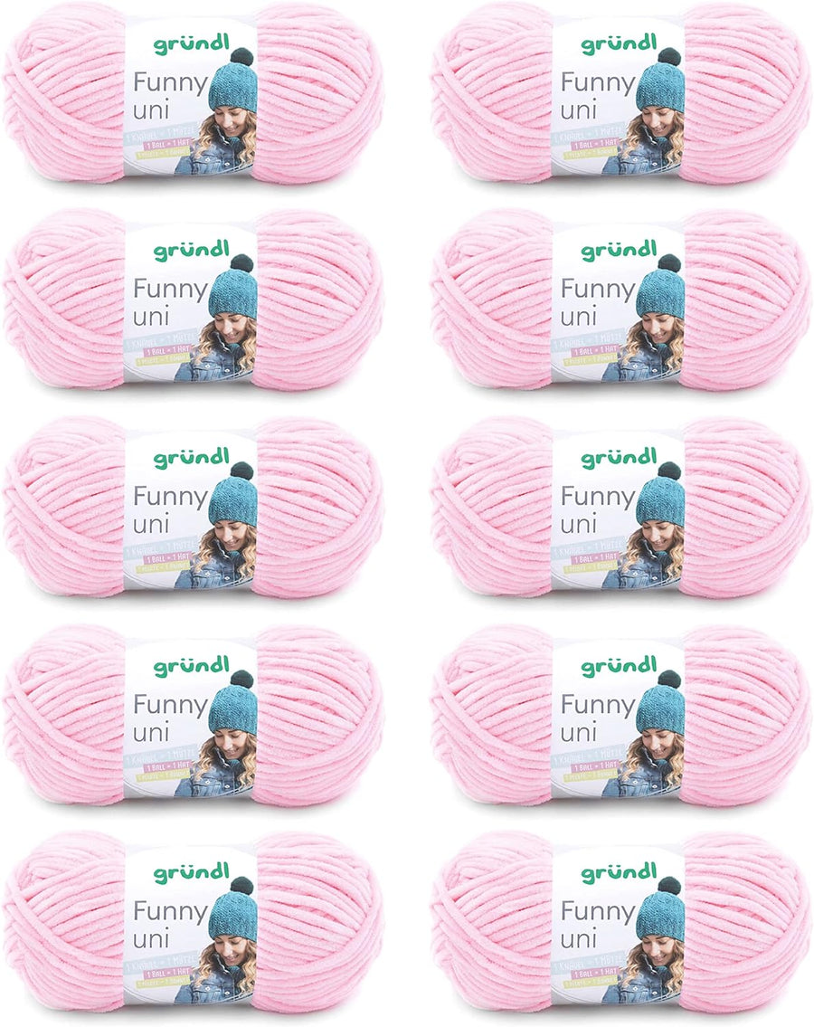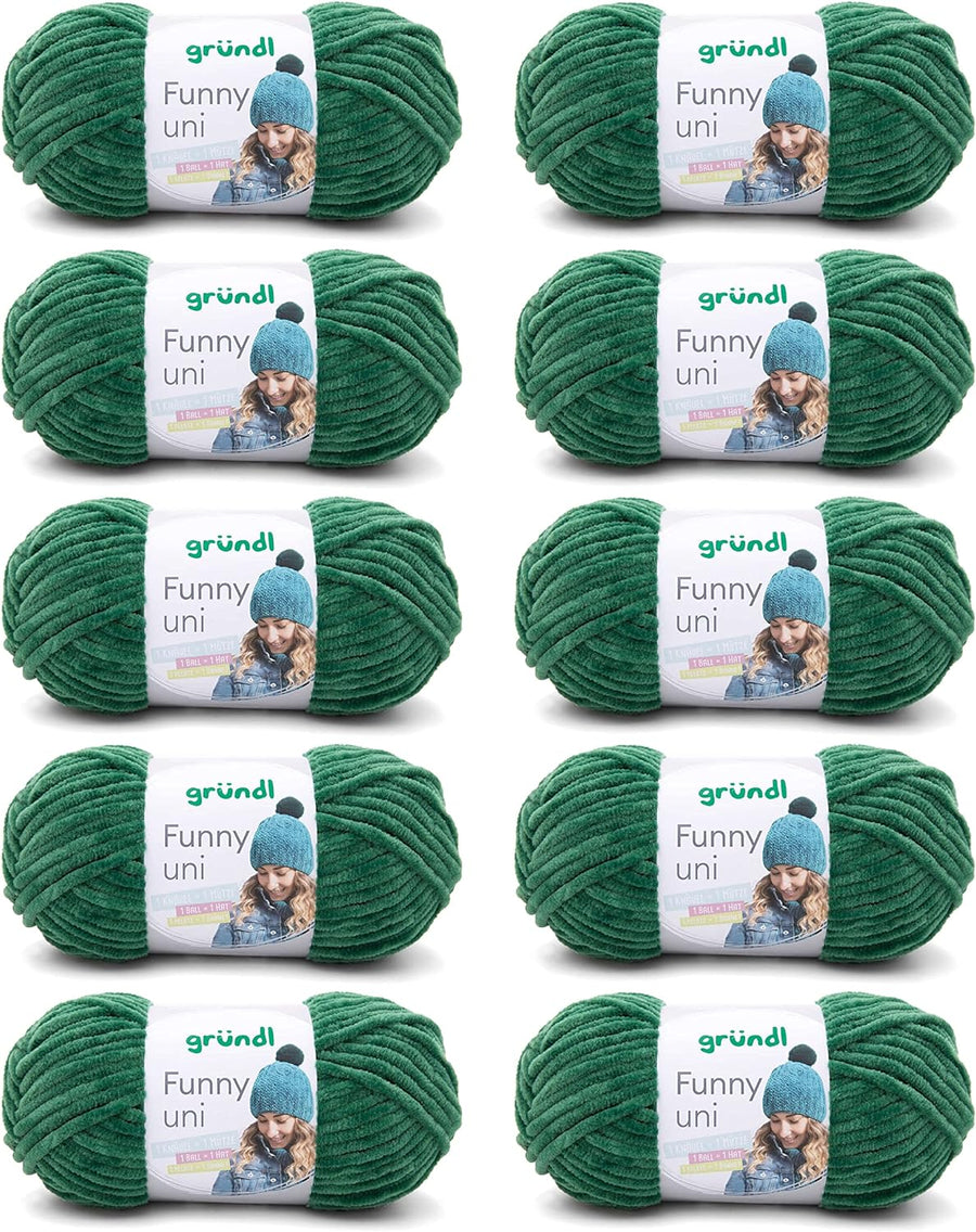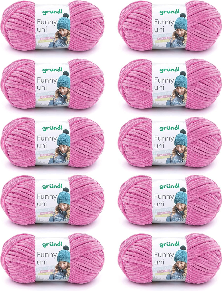 Gründl Funny uni Strick- & Häkelgarn (samtartiges Chenille-Garn aus 100 % Polyester, 10 x 100 g / 12